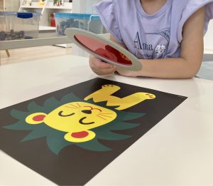 次に赤い色のお耳と髭のライオンさんの絵を覗くと、耳と髭が見えなくなりました。