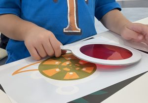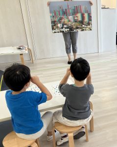 第1回目は外部講師に来ていただき、4歳児・5歳児対象にかがくタイム「立体視・補色」を実施いたしました。