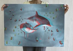 また、赤くも青くも見えるイルカや街並みの風景を魔法の眼鏡で覗くと、飛び出して見えました!