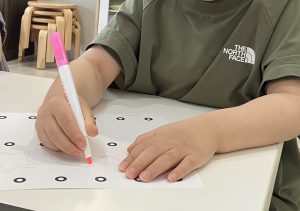 実際に、立体視を書いてみよう!とピンクのペンと青のペンを使い、講師の話を良く聞いて書いてみました。