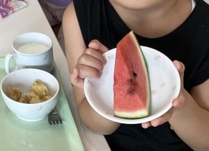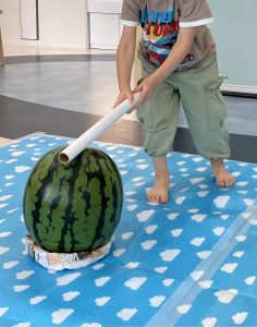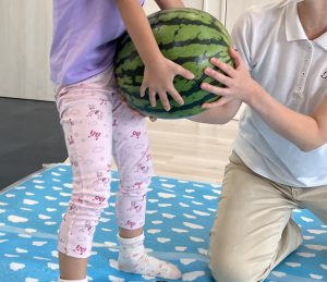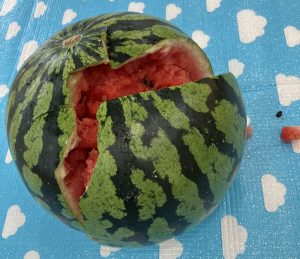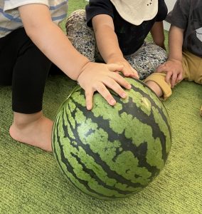 食育で毎年恒例の「すいか割り」を行いました🍉