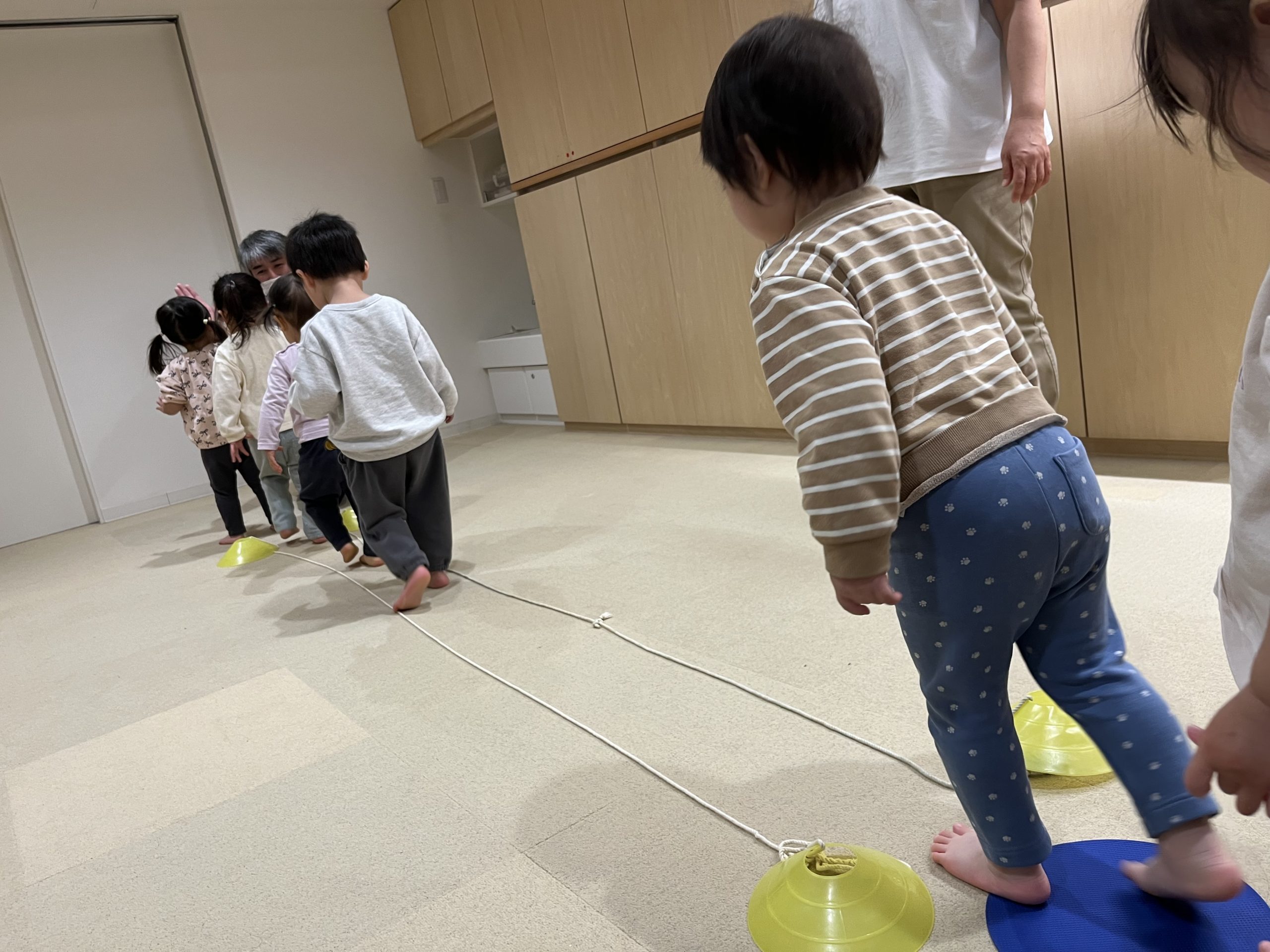 ロープの間を はみ出さないように歩いたり。