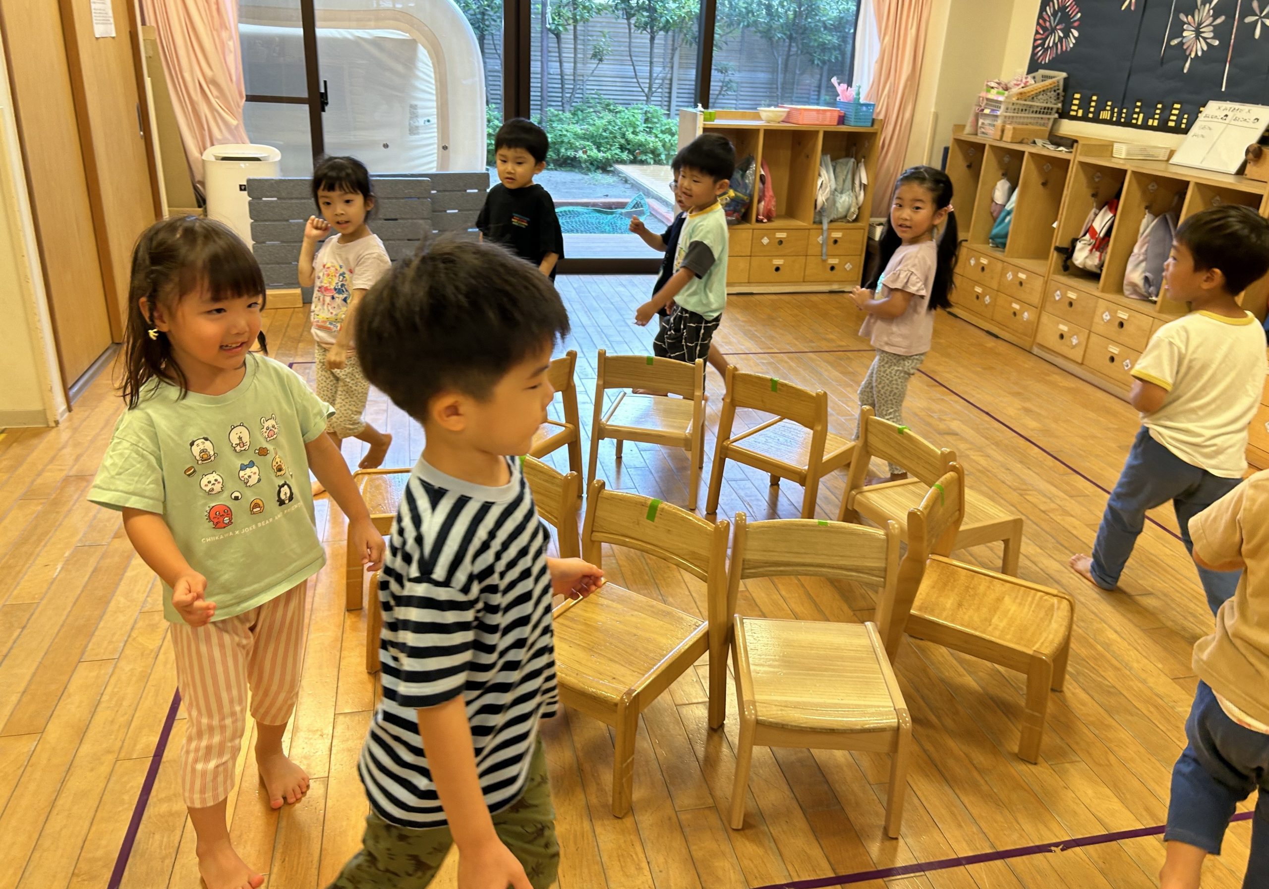 椅子取りゲームも『おすわりやす いすどっせ』という