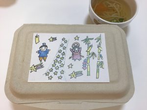 織姫様と彦星様が描かれたお弁当♪ お子さまたちに 七夕の日を楽しんでもらいたいと