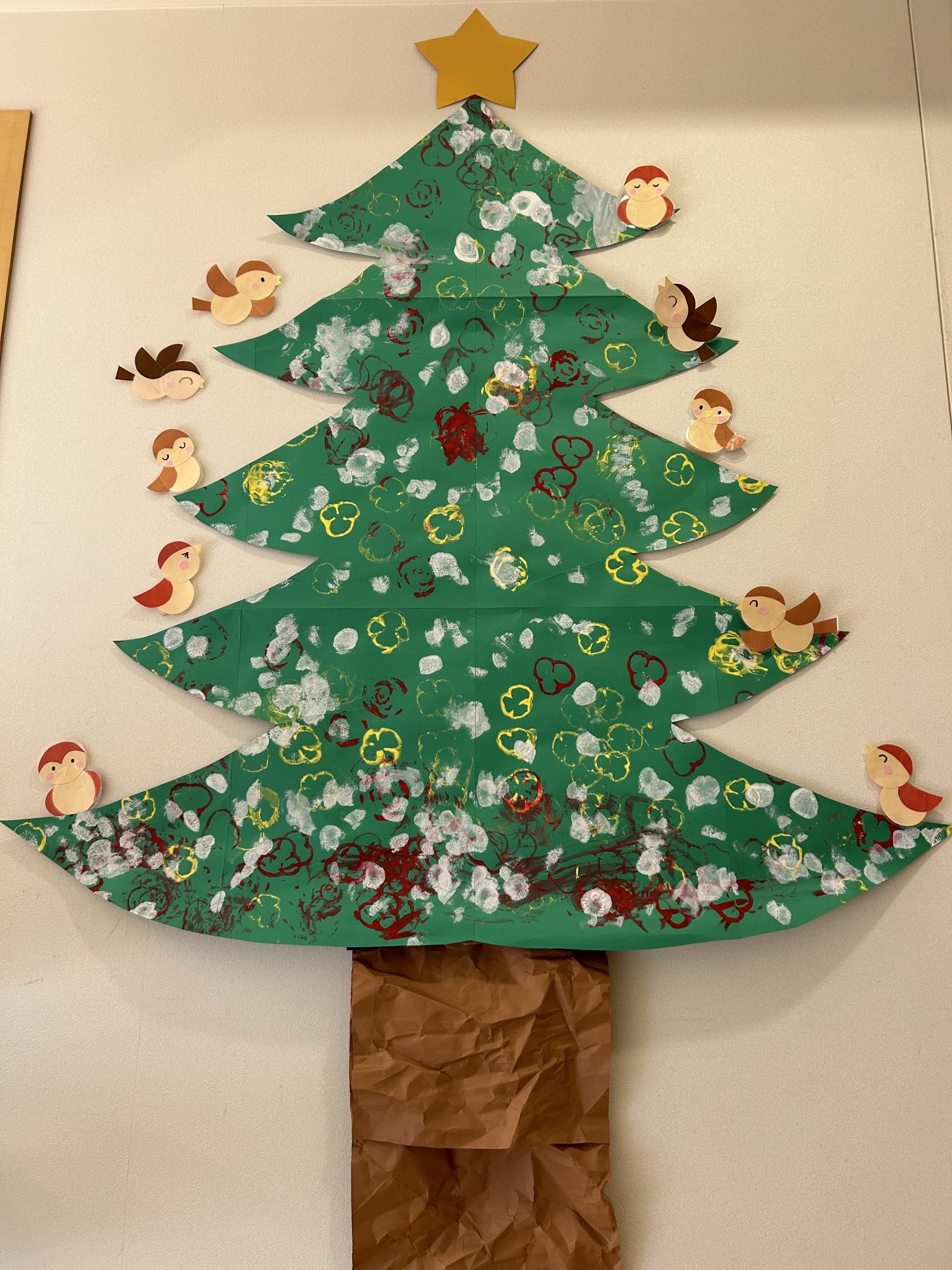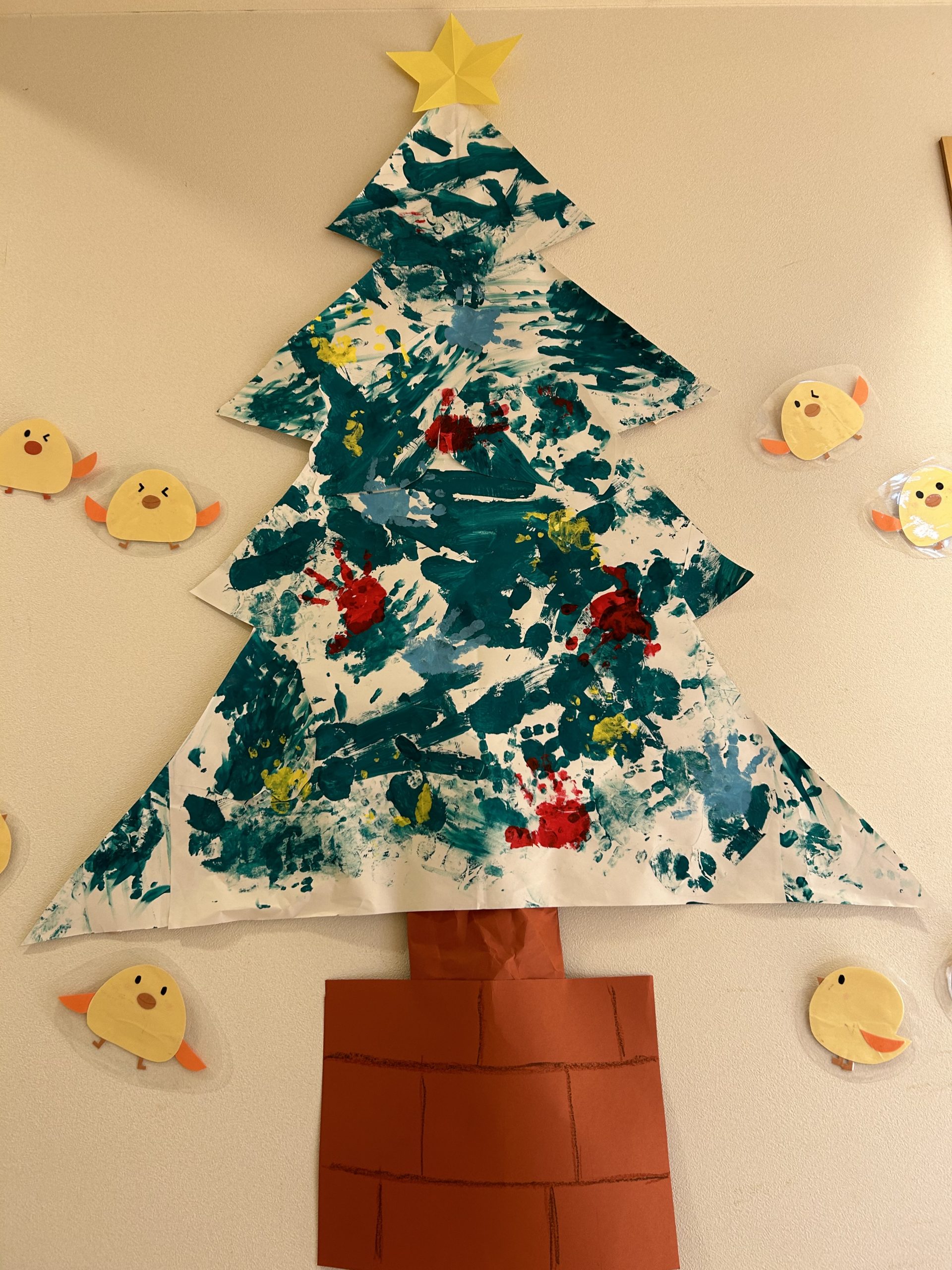 お子さまたちの手形でツリーを作りました🎄