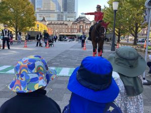 初めて間近で騎馬隊のお馬さんを見てドキドキしているお子様たち😳