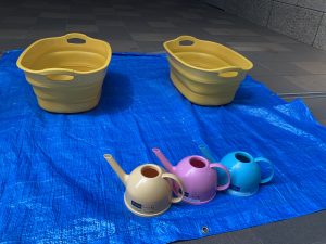 ジョウロにお水を汲んで流してみたり、