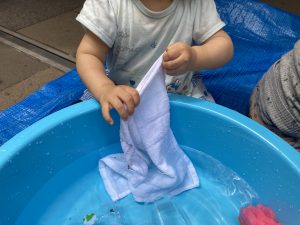 タオルやスポンジを使ってお洗濯ごっこをして遊びました😄