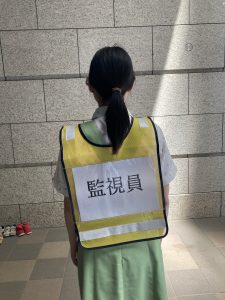 「監視員」のビブスを着用し、安全に配慮して実施しています。
