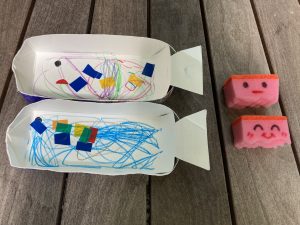 2歳児クラスのお子様は、牛乳パックで船を作りましたよ🚢