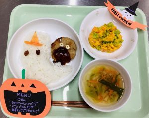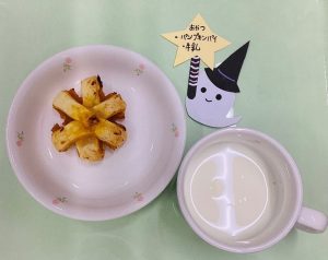 おやつにはかぼちゃの形をしたパンプキンパイと