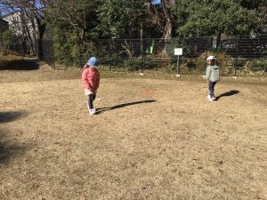 午前中は渋沢庭園で凧あげと缶ぽっくりをしました。
