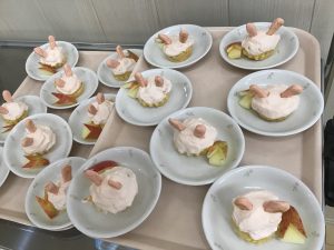 お子さまの喫食用はそれぞれに小さいうさぎのケーキ。