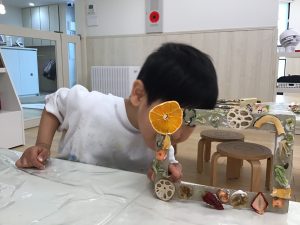 かぼちゃ、いちご、オレンジ、キャベツ、バナナを