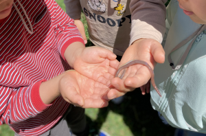 外遊びでは、虫や生き物に出会い、