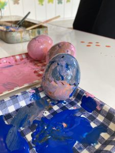 みんなでスモッグに着替えて、イースターエッグの色付けにチャレンジしました。