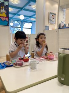 ランチタイムは、みんなでテーブルを囲んで、顔を合わせながら保護者の方が作ってくれたお弁当🍱を一緒にいただきました。