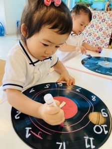 ⌛レコード盤を時計に見立て、自分の好きな絵を描きました⌛