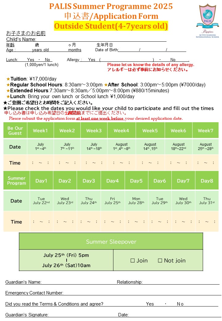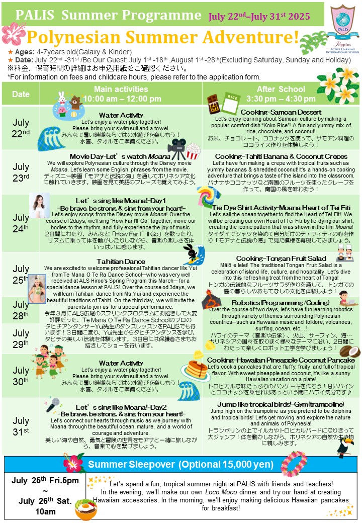 今年のサマープログラムのお申込みが始まりました!