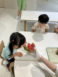 五感を使ってすいかに触れ、夏のはじまりを感じる1日となりました。