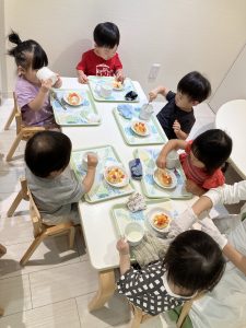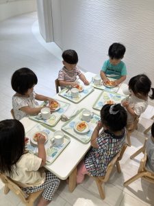 またおやつには、すいかがトッピングされたパンケーキを食べました。