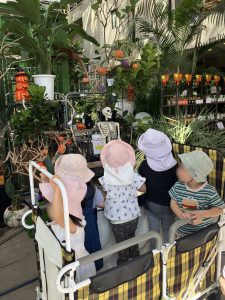 庭園の中にある植物のお店にはハロウィンの装飾がしてあり、