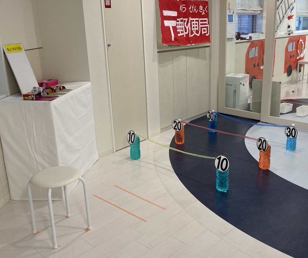 ボールを台に乗せ、穴に書いてある得点をめがけて
