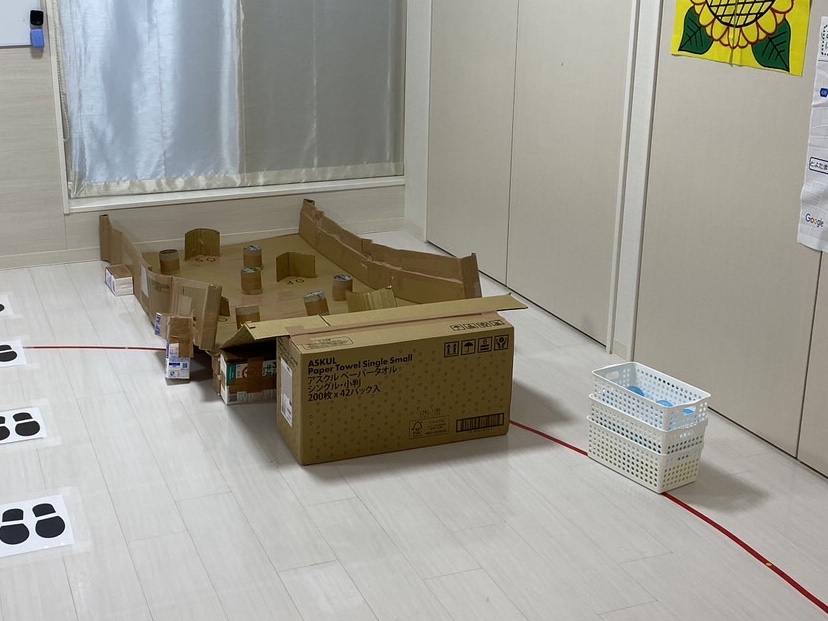 ボールを台に乗せ、穴に書いてある得点をめがけて