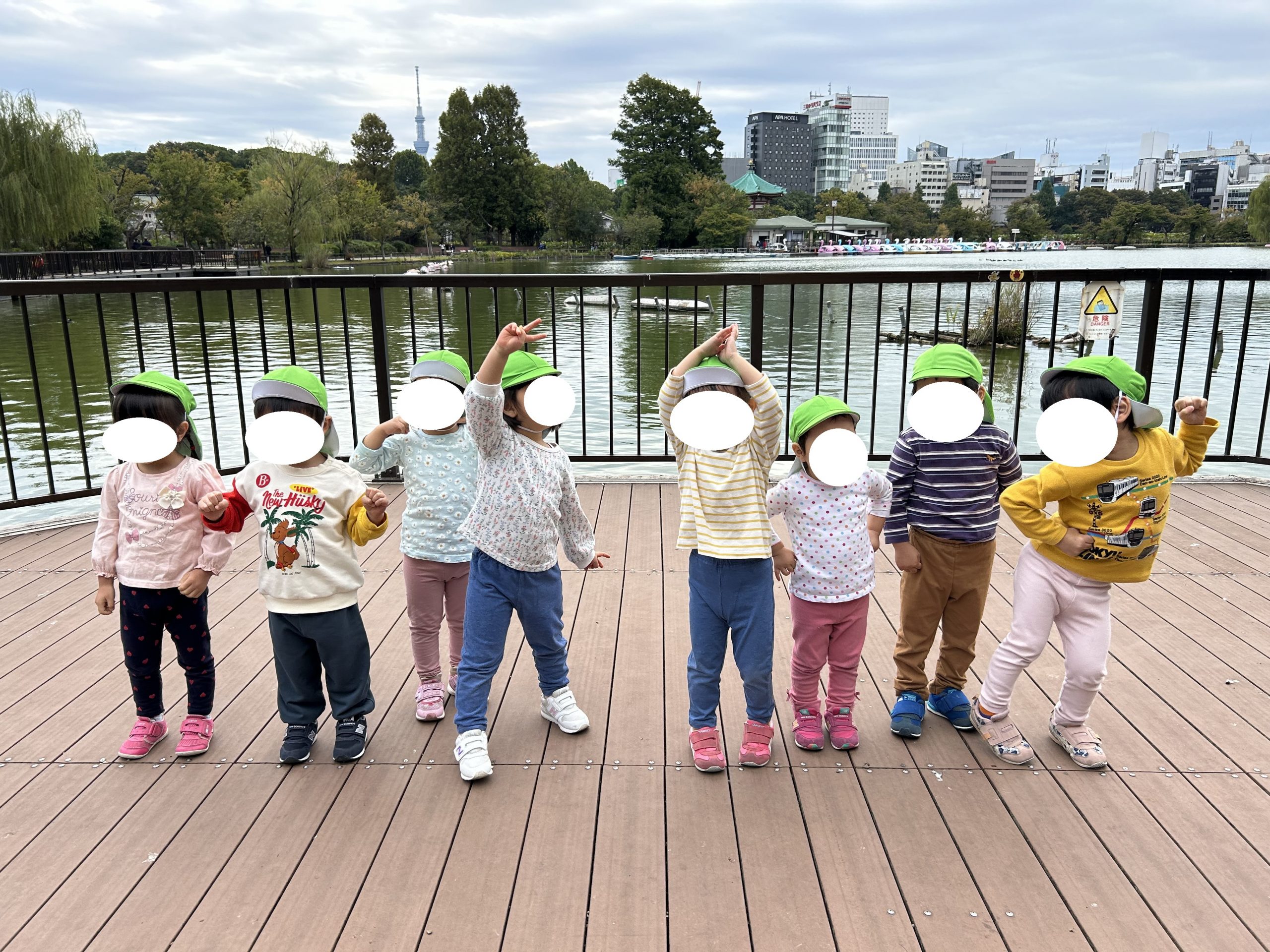 不忍池でおせんべいを食べたり、浮橋で遊んだり