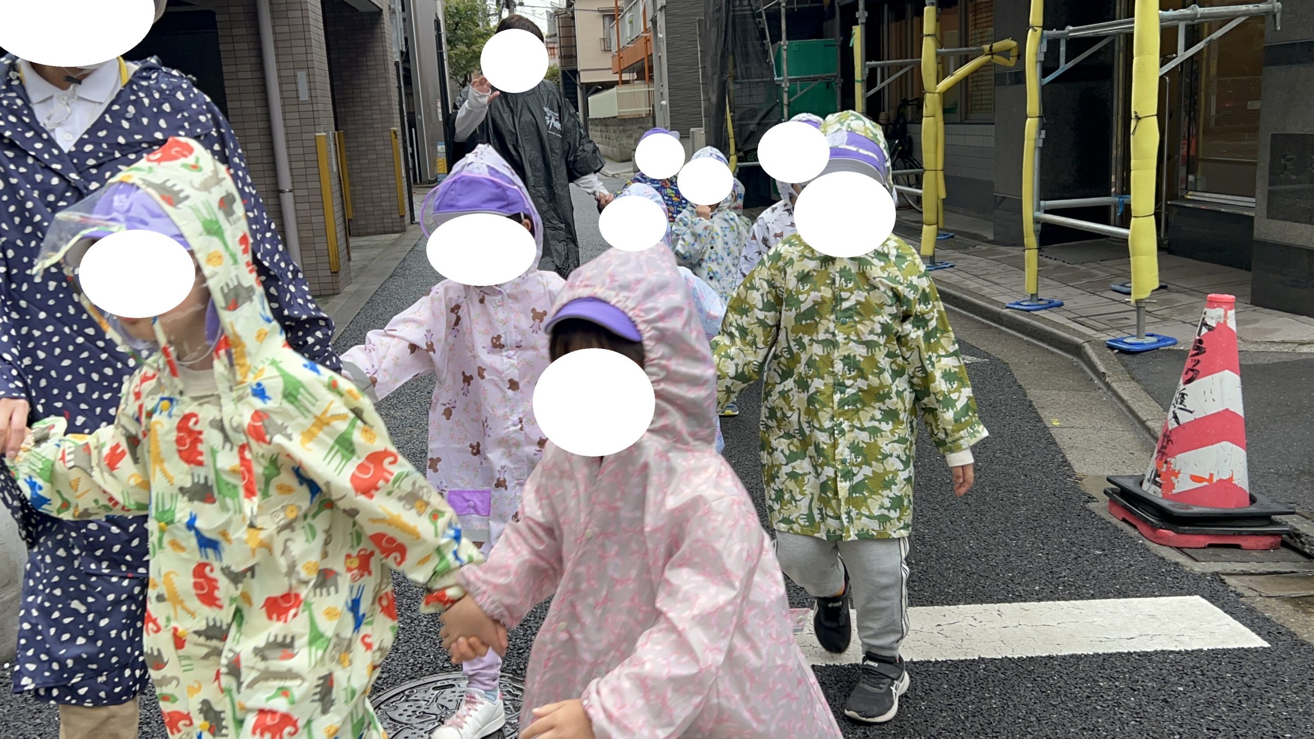 みんなでレインコートを着用して