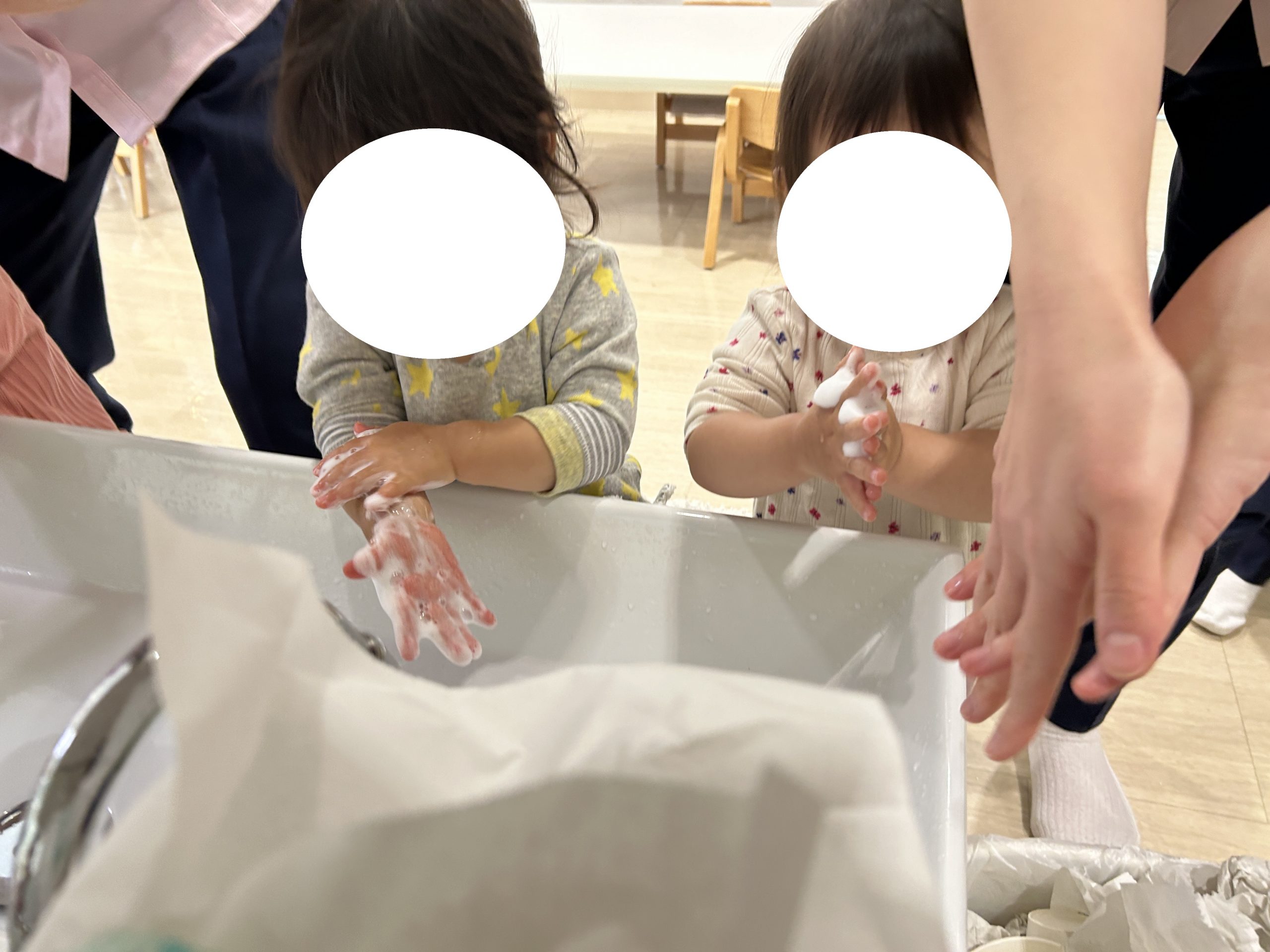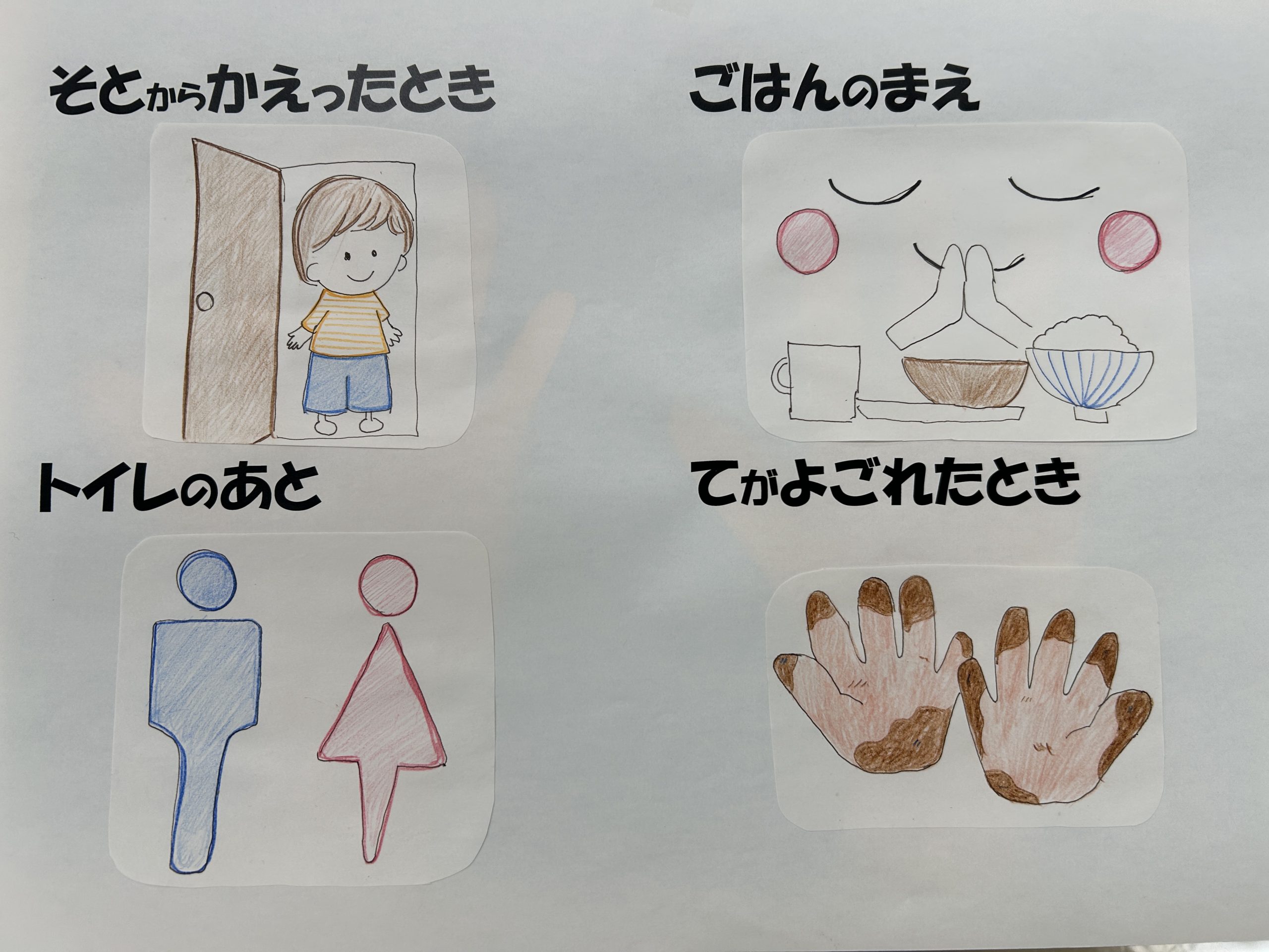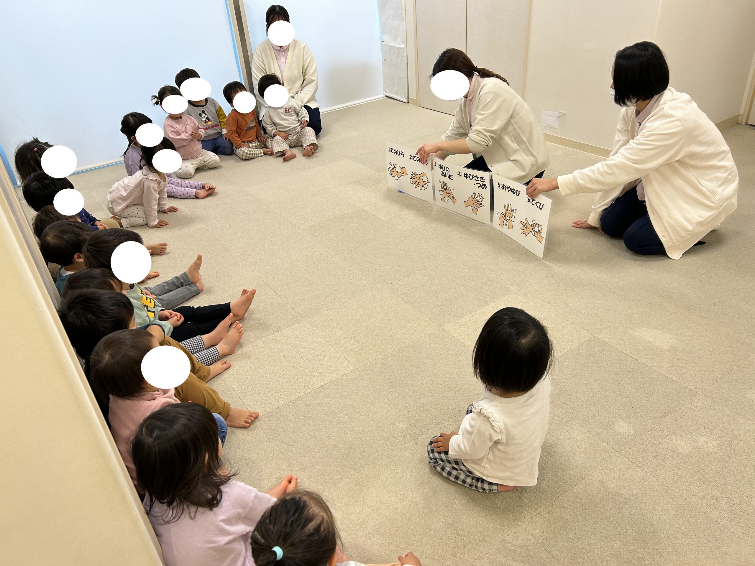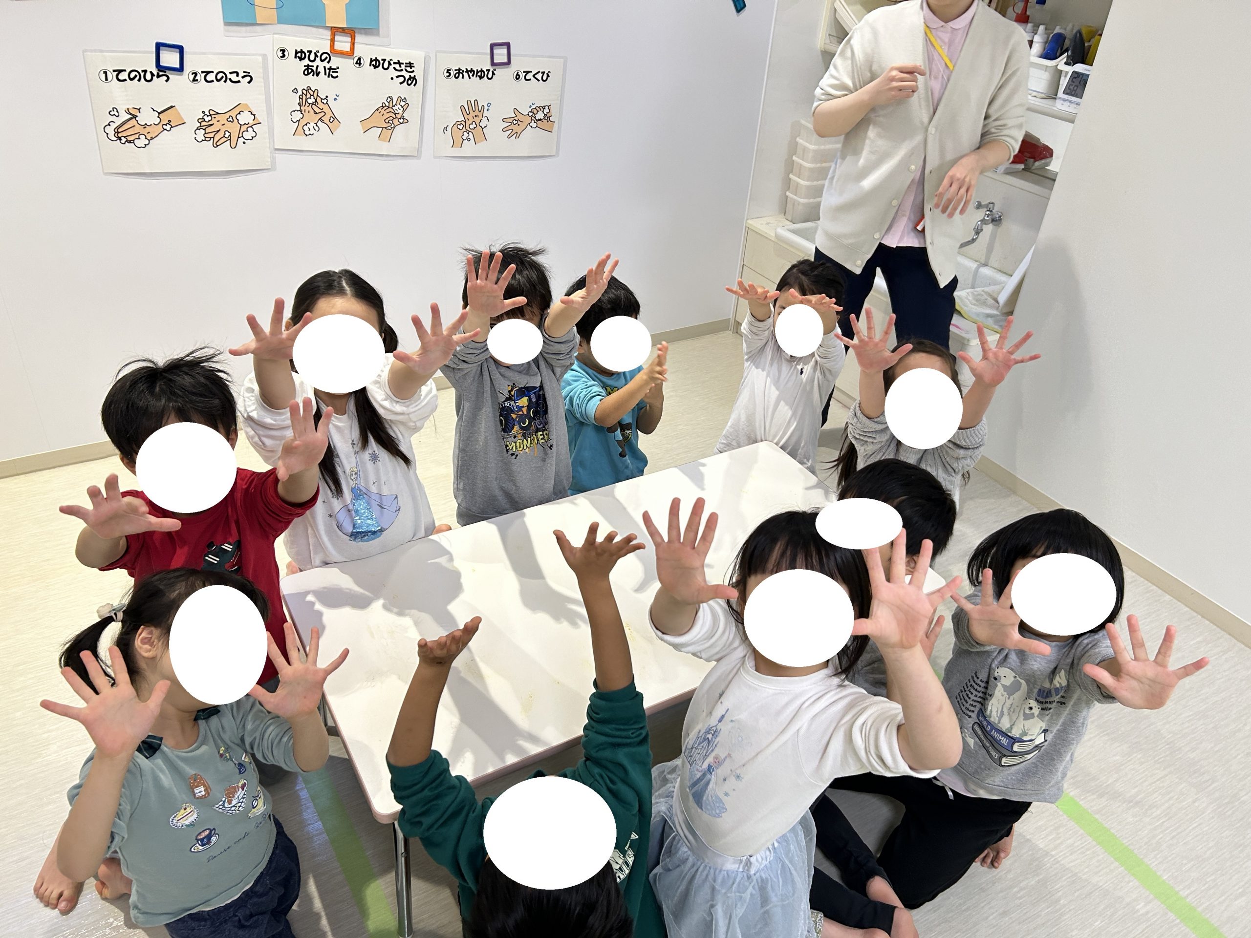 どんな時に手を洗うのか?の確認をお子様たちと一緒に行い・・・