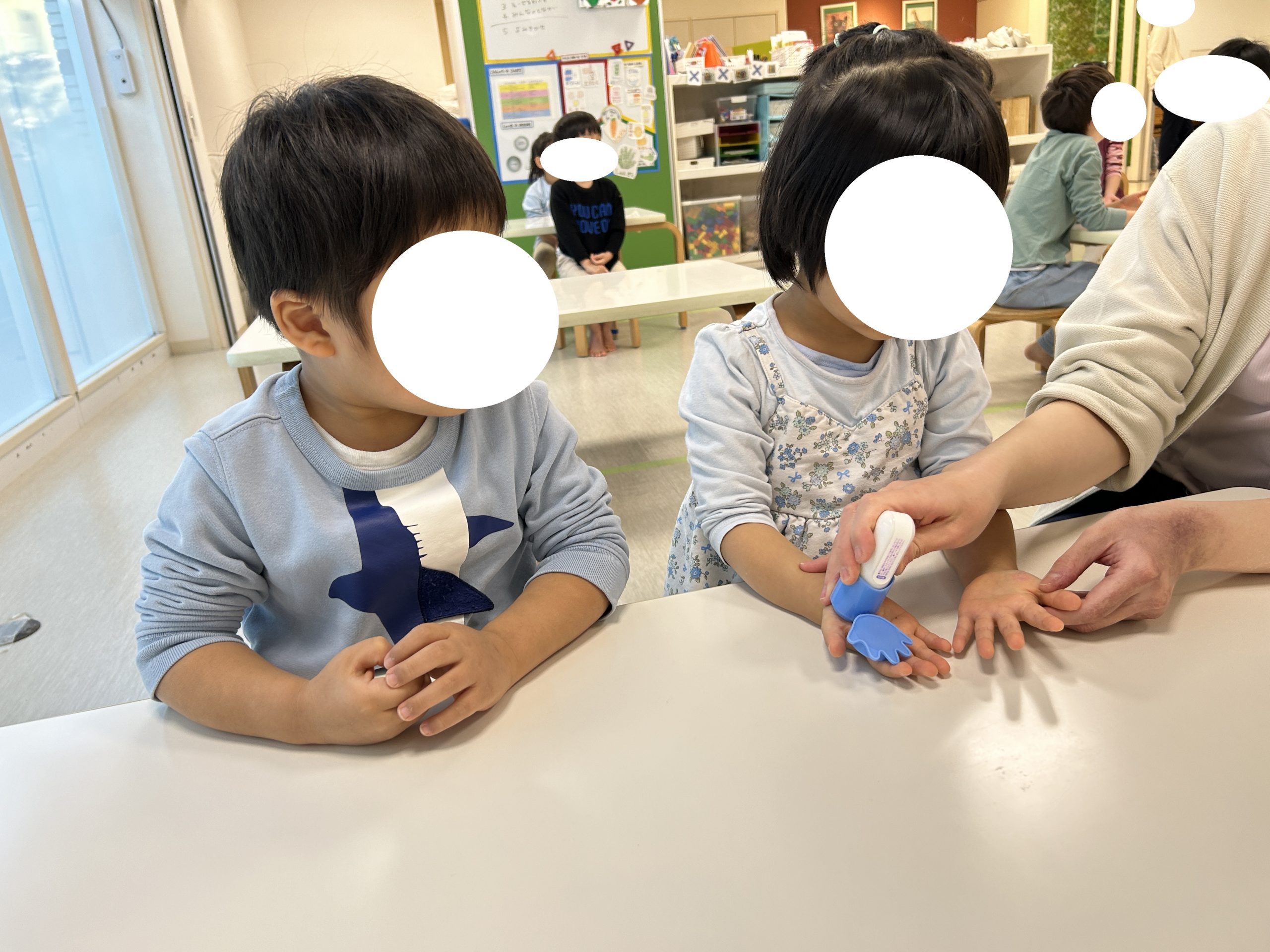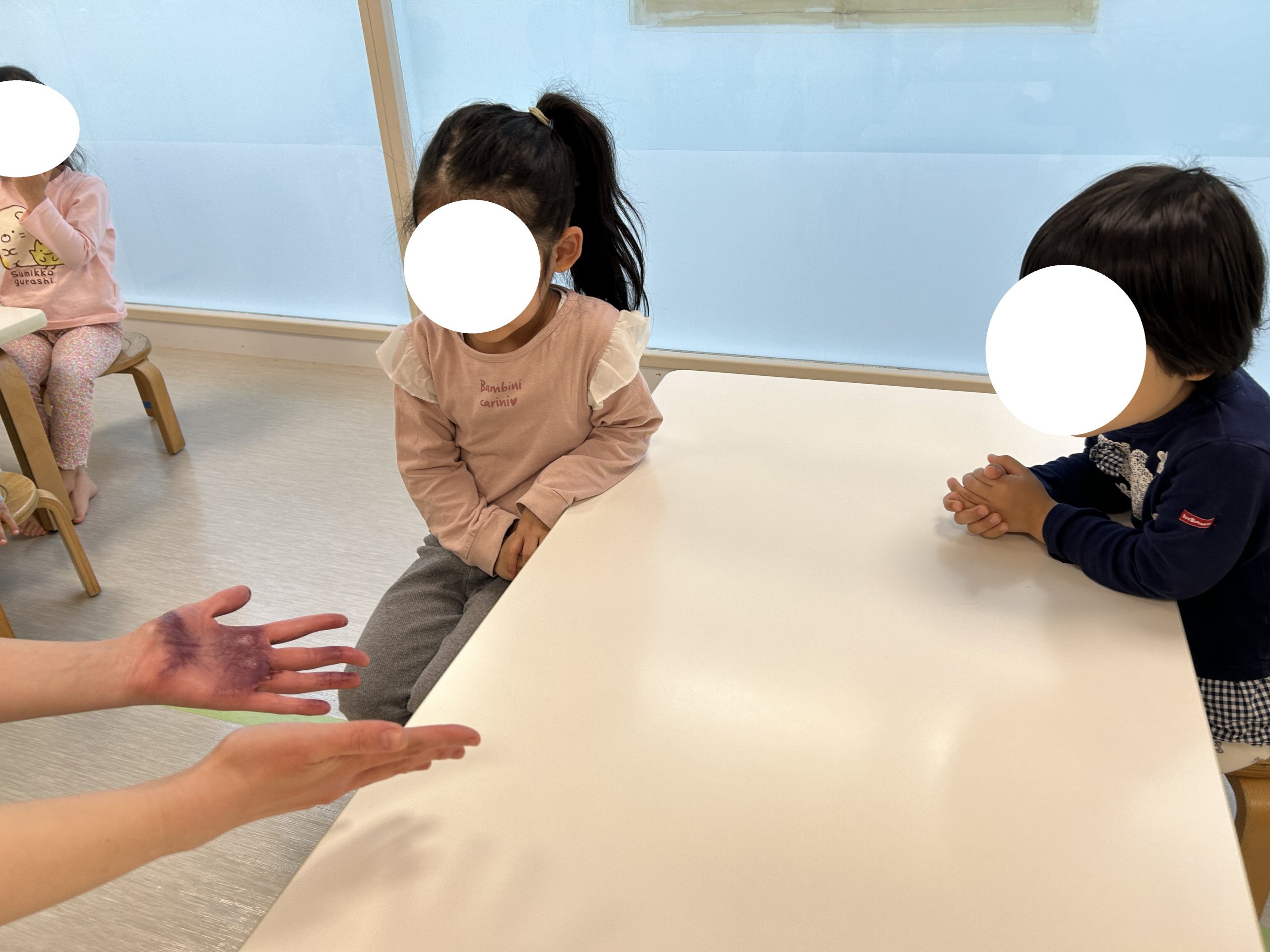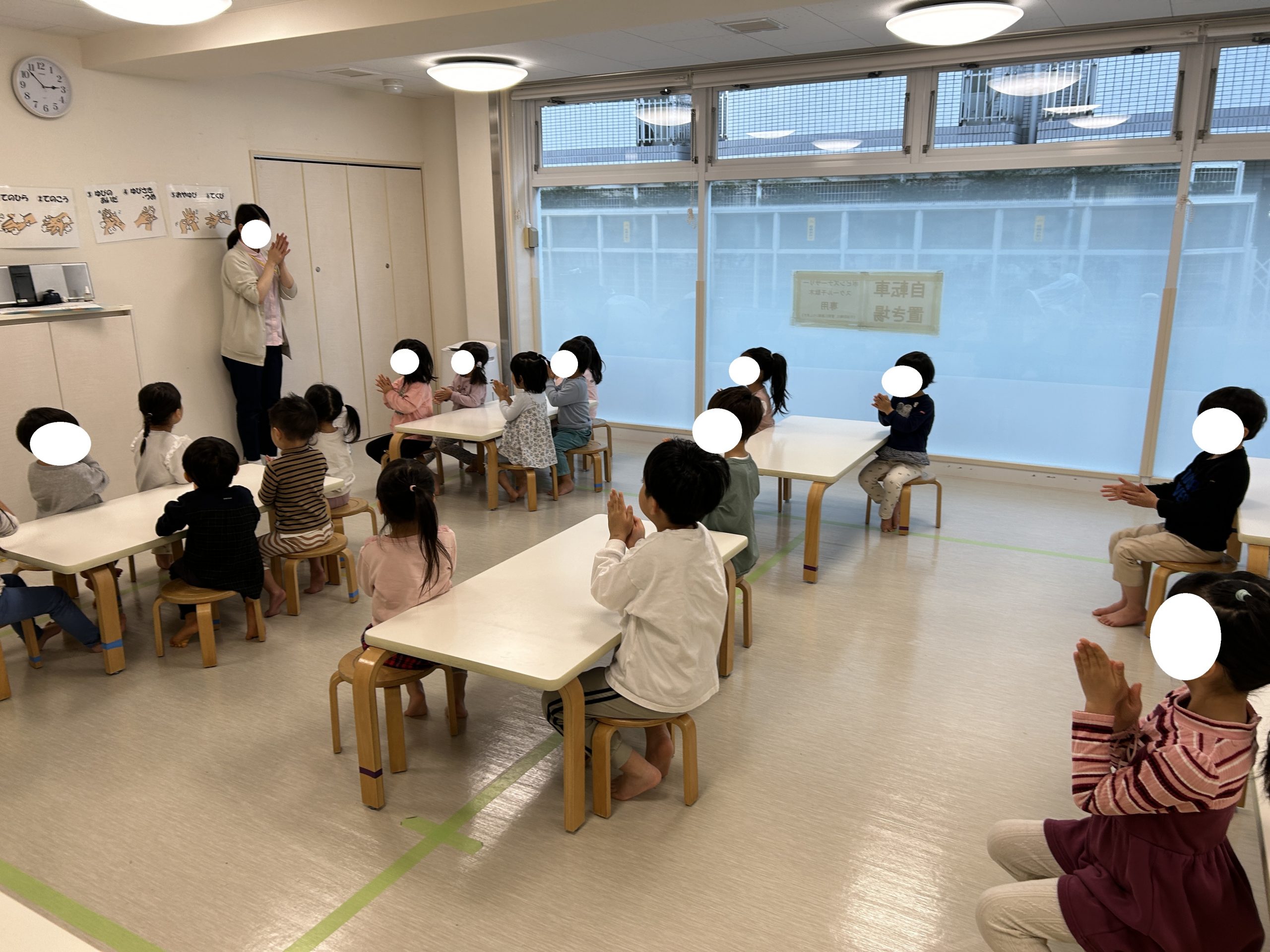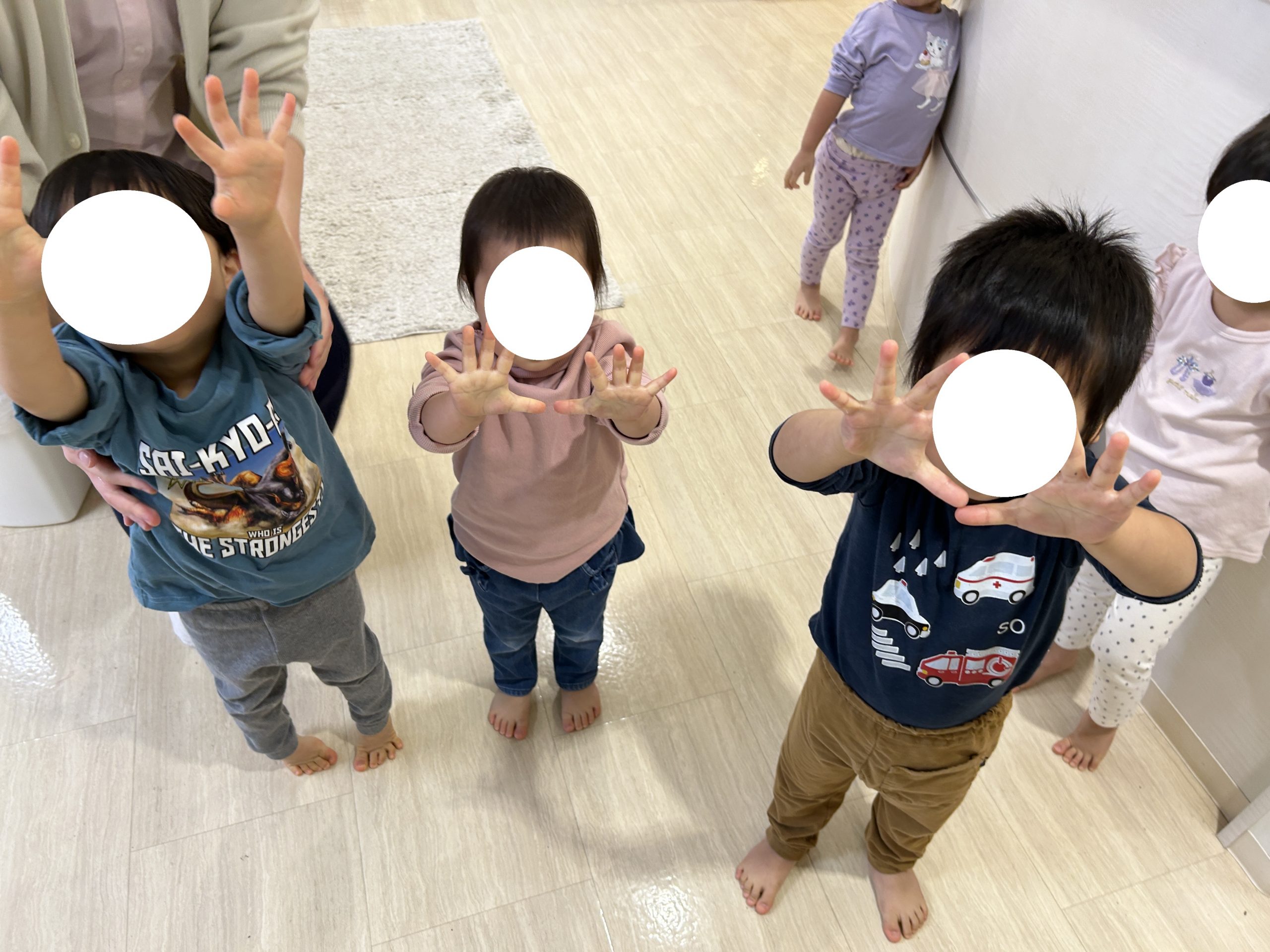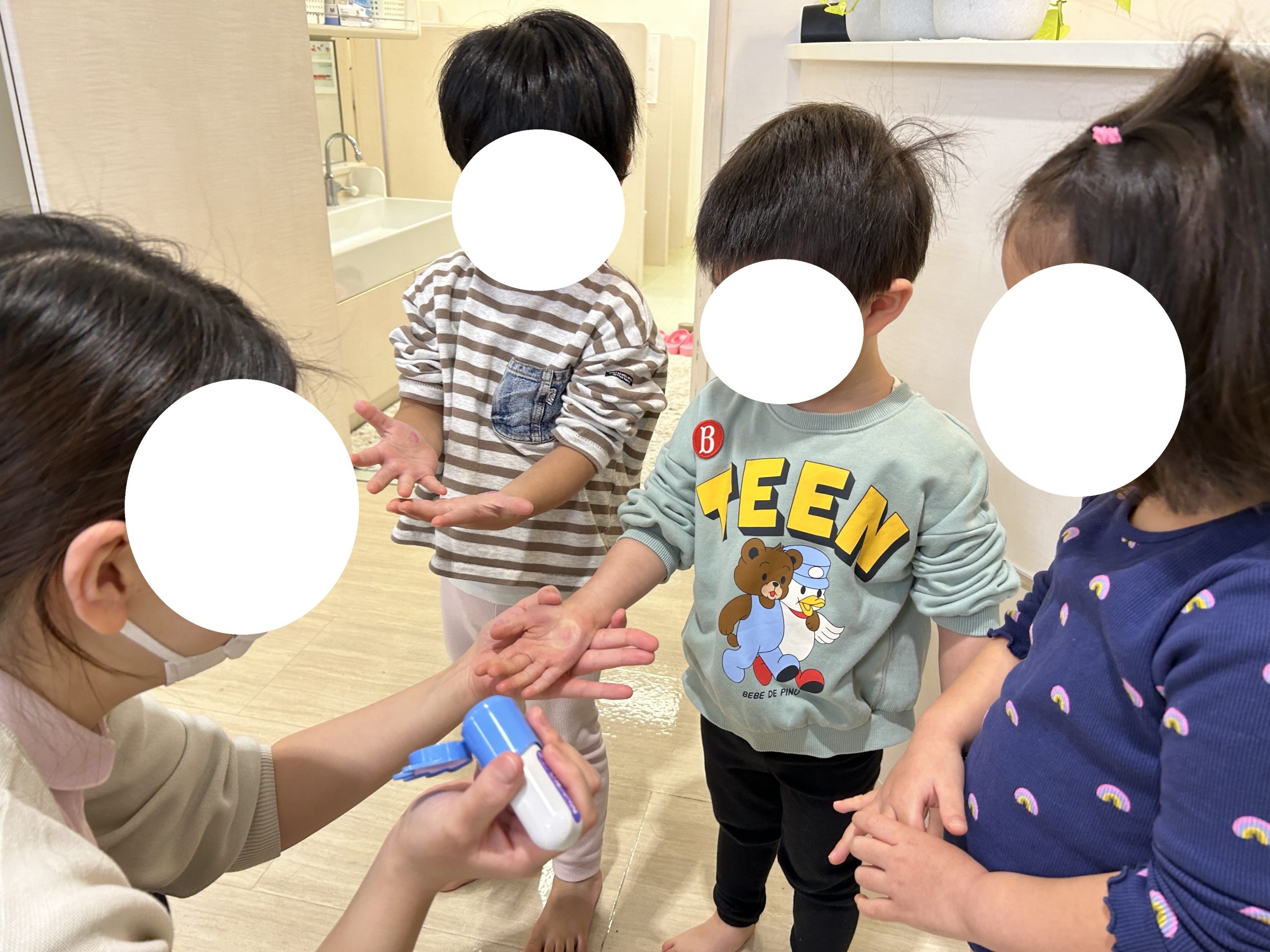 どんな時に手を洗うのか?の確認をお子様たちと一緒に行い・・・
