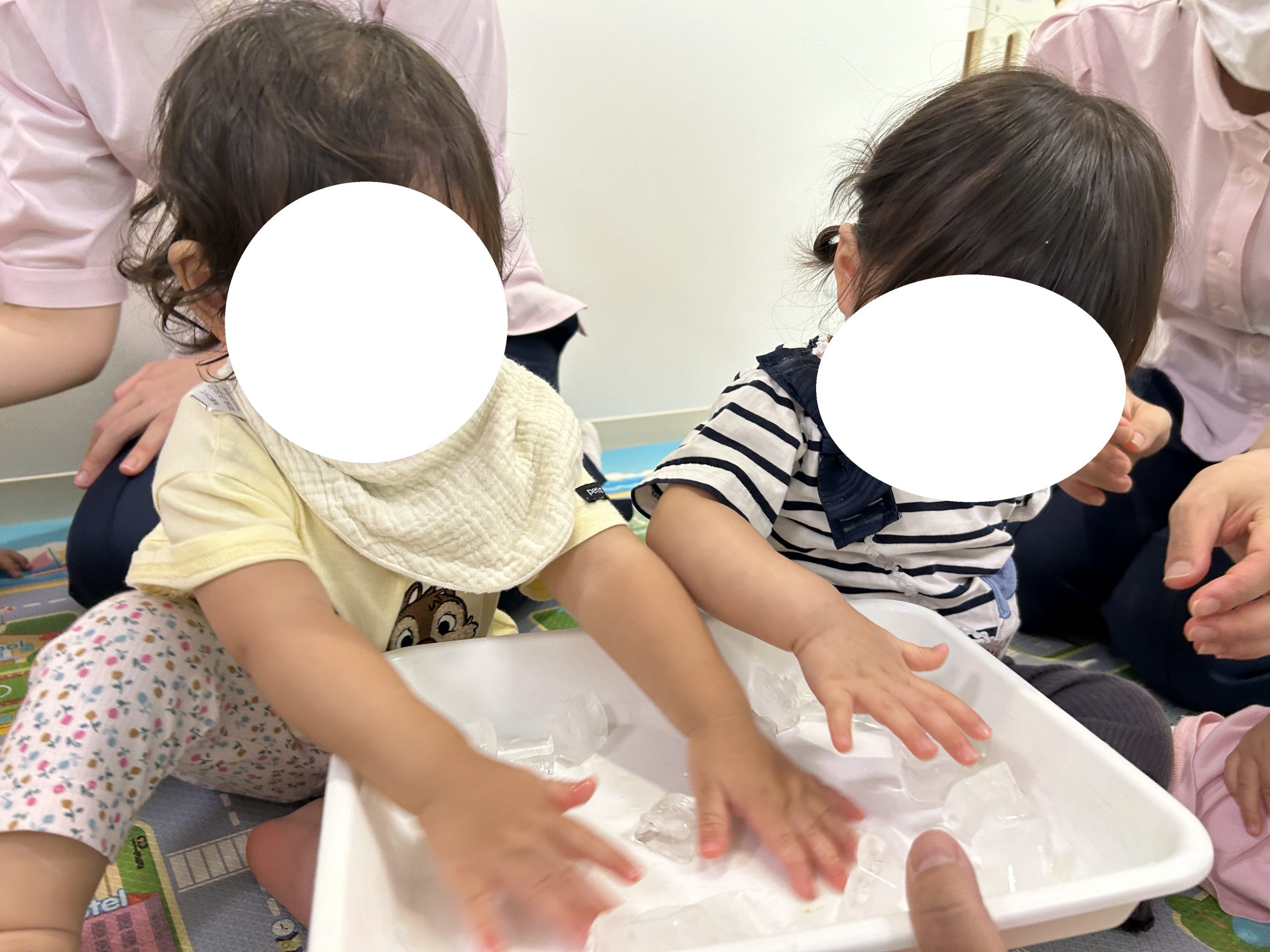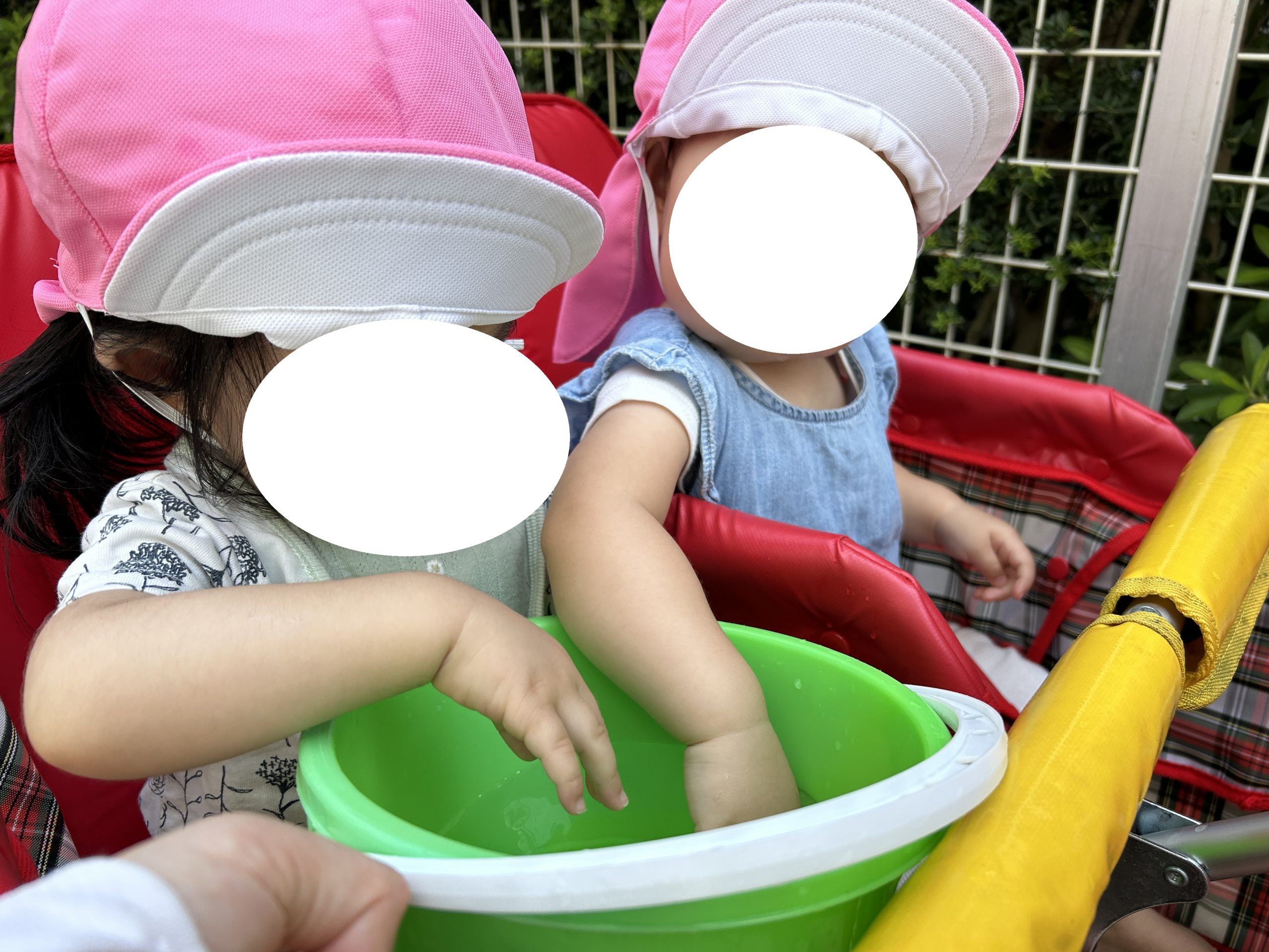 一人ひとりが水に触れる遊びを楽しんでいました。