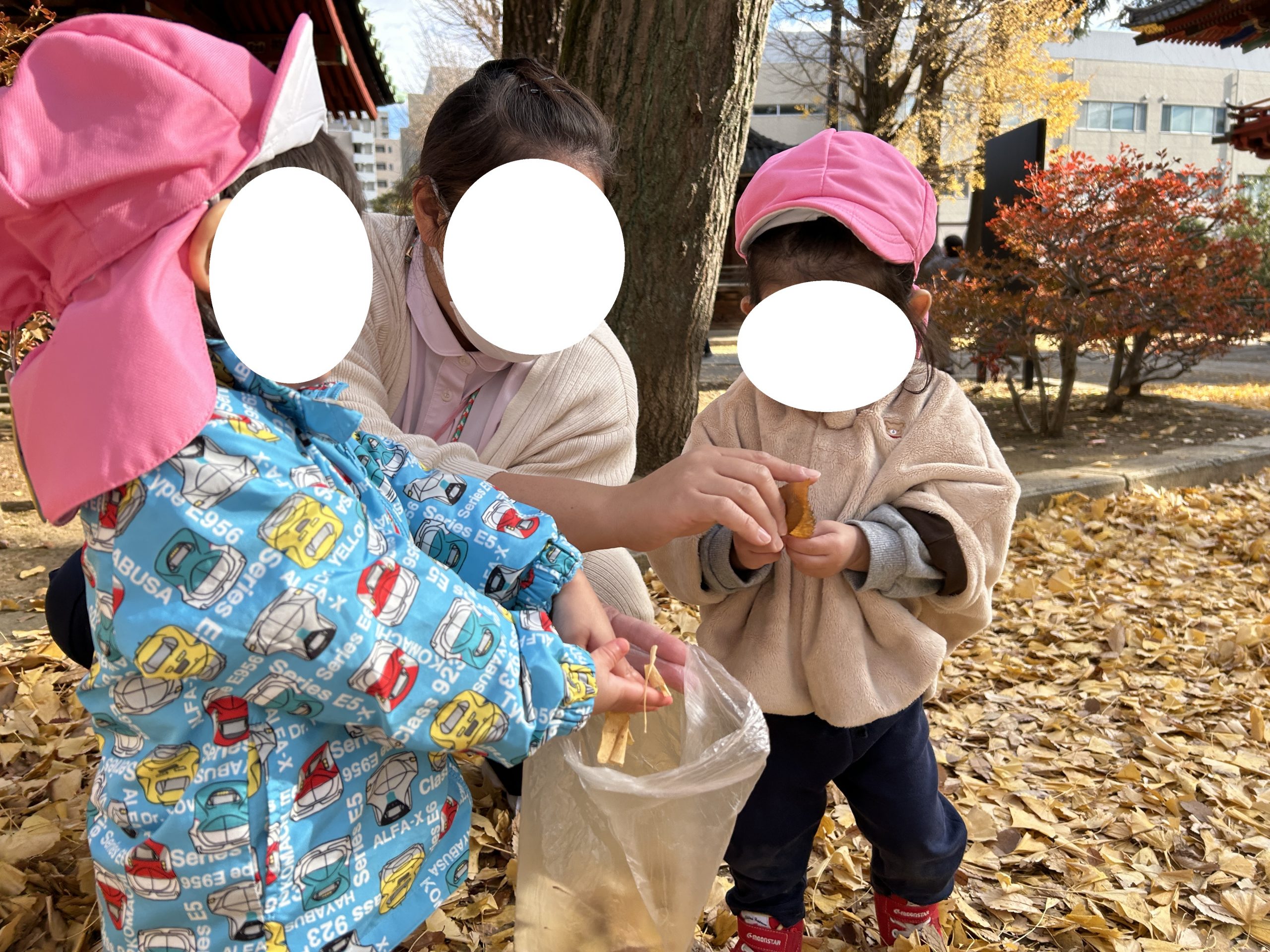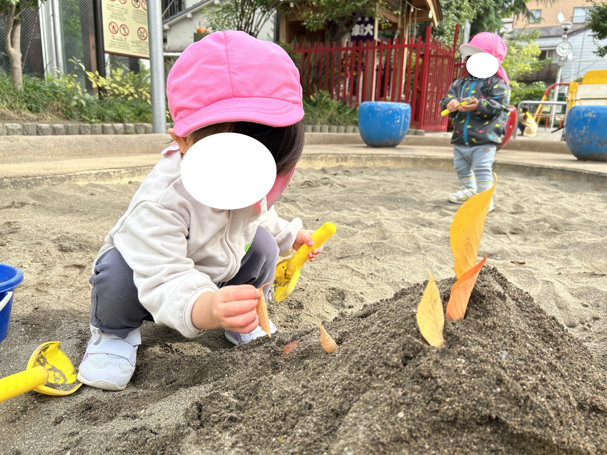 紅葉した葉っぱで見立て遊びを楽しんだり。