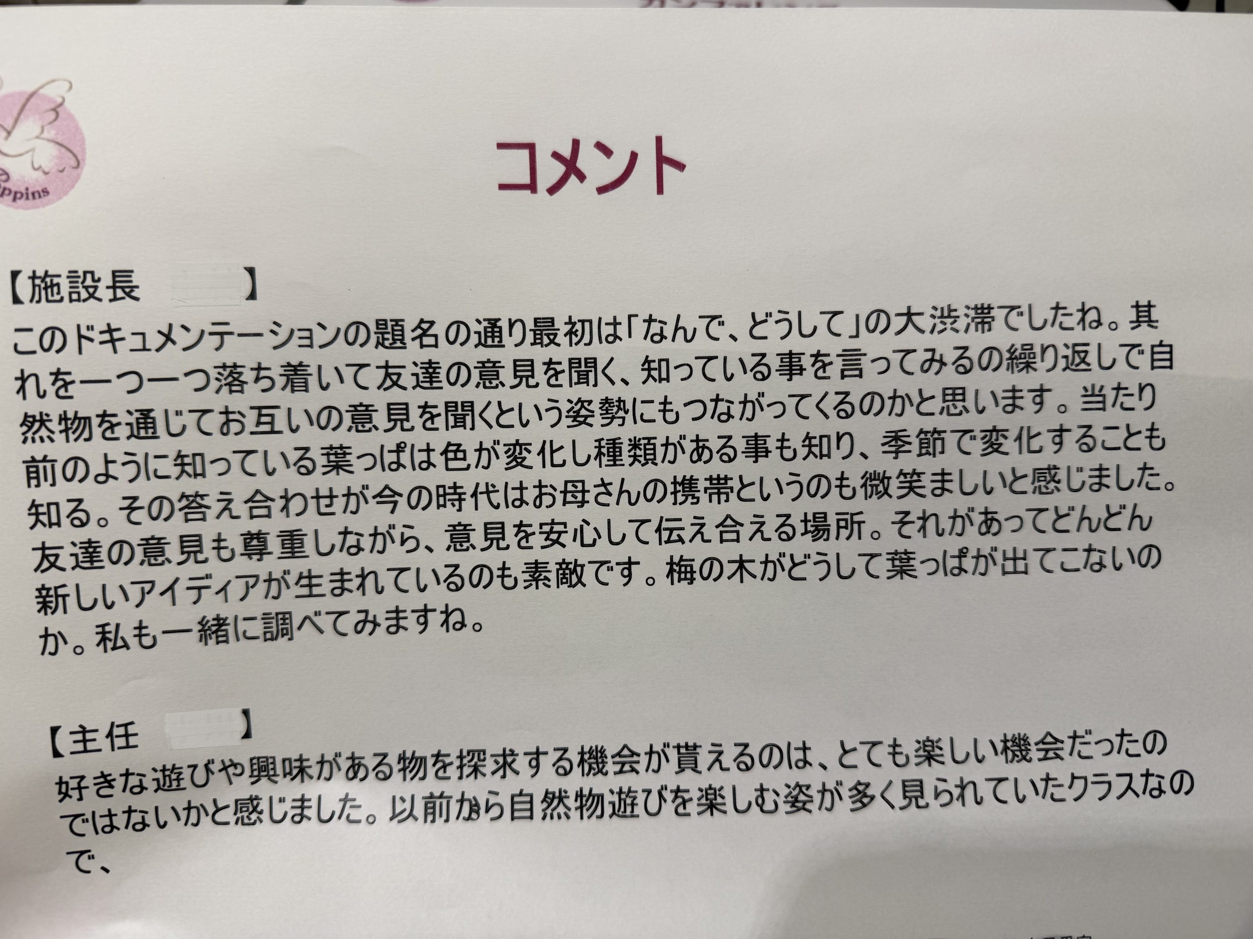 これまでの活動では、活動の中で四季に興味を持ち、その季節ならではの葉っぱの色について話し合う姿が増えていったマーガレットさん。
