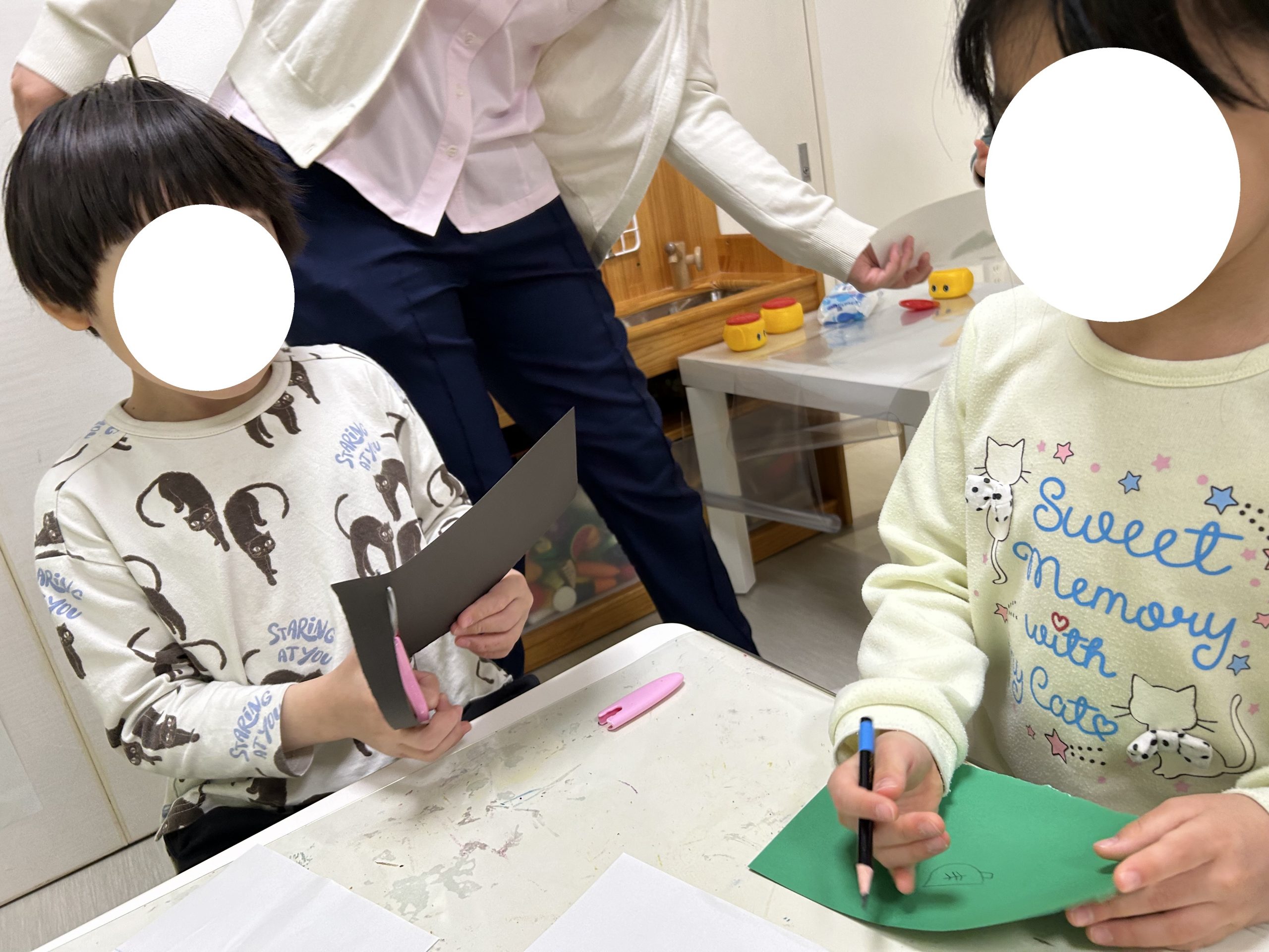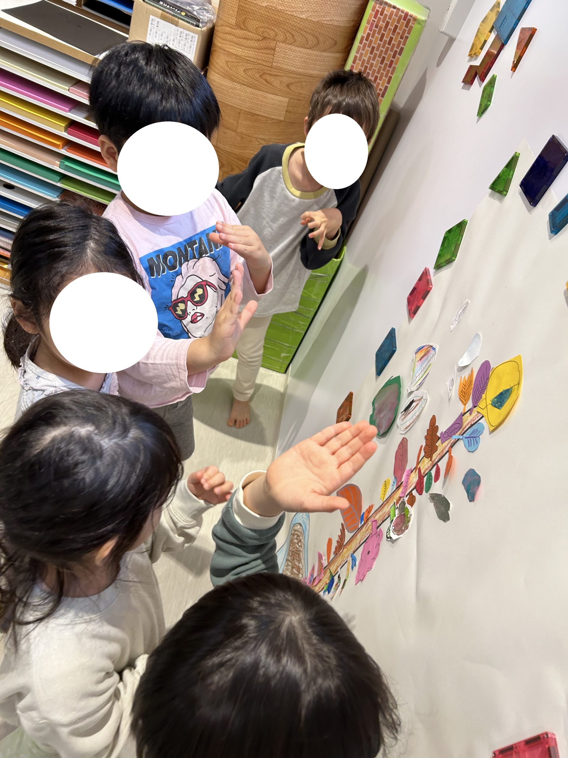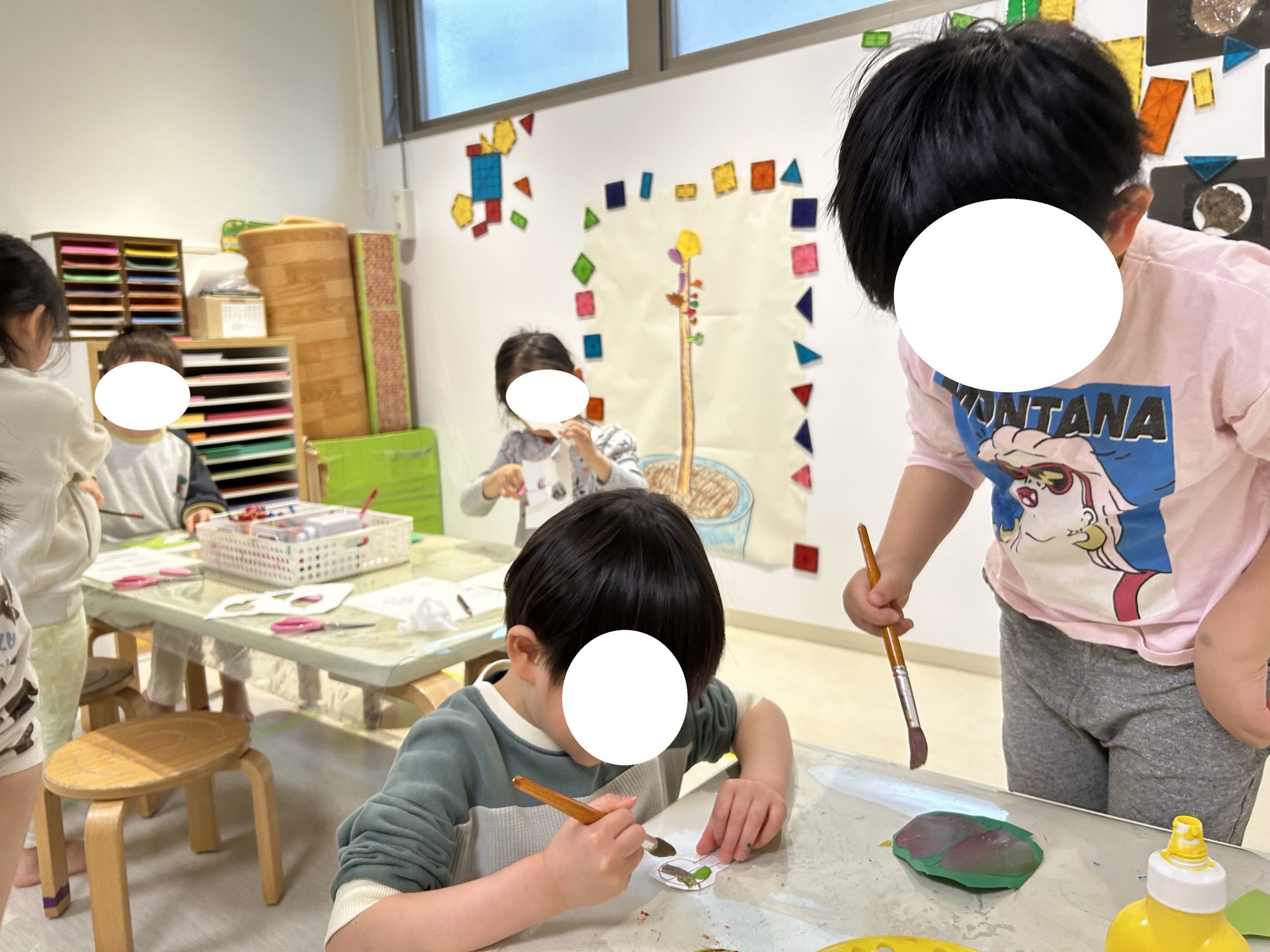 梅の木の葉っぱ作りを楽しんでいたお子様たち。