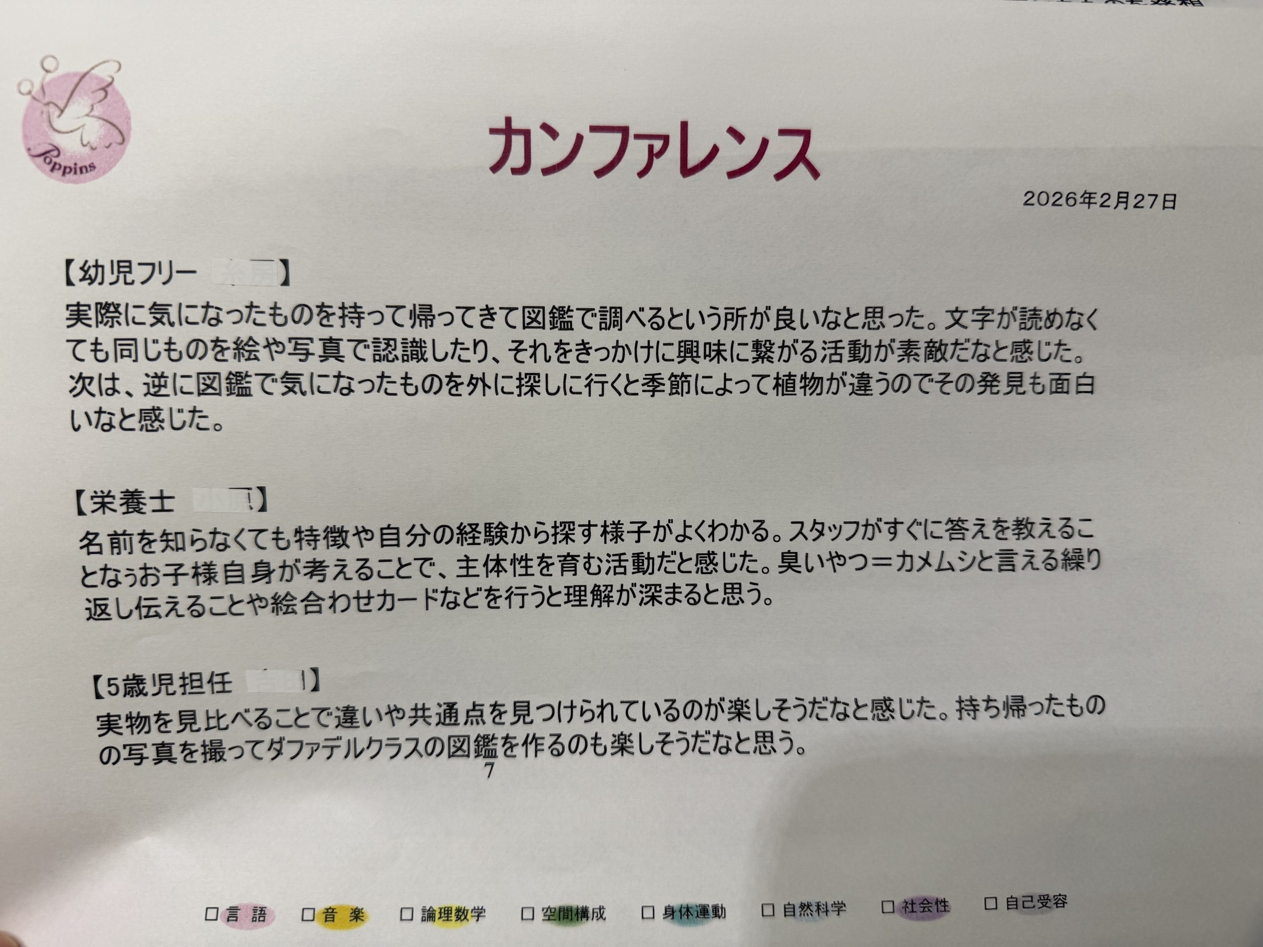 2月にはお子様達の姿をドキュメンテーションにまとめ、他のスタッフとの共有・意見交換をするためにカンファレンスを行いました。