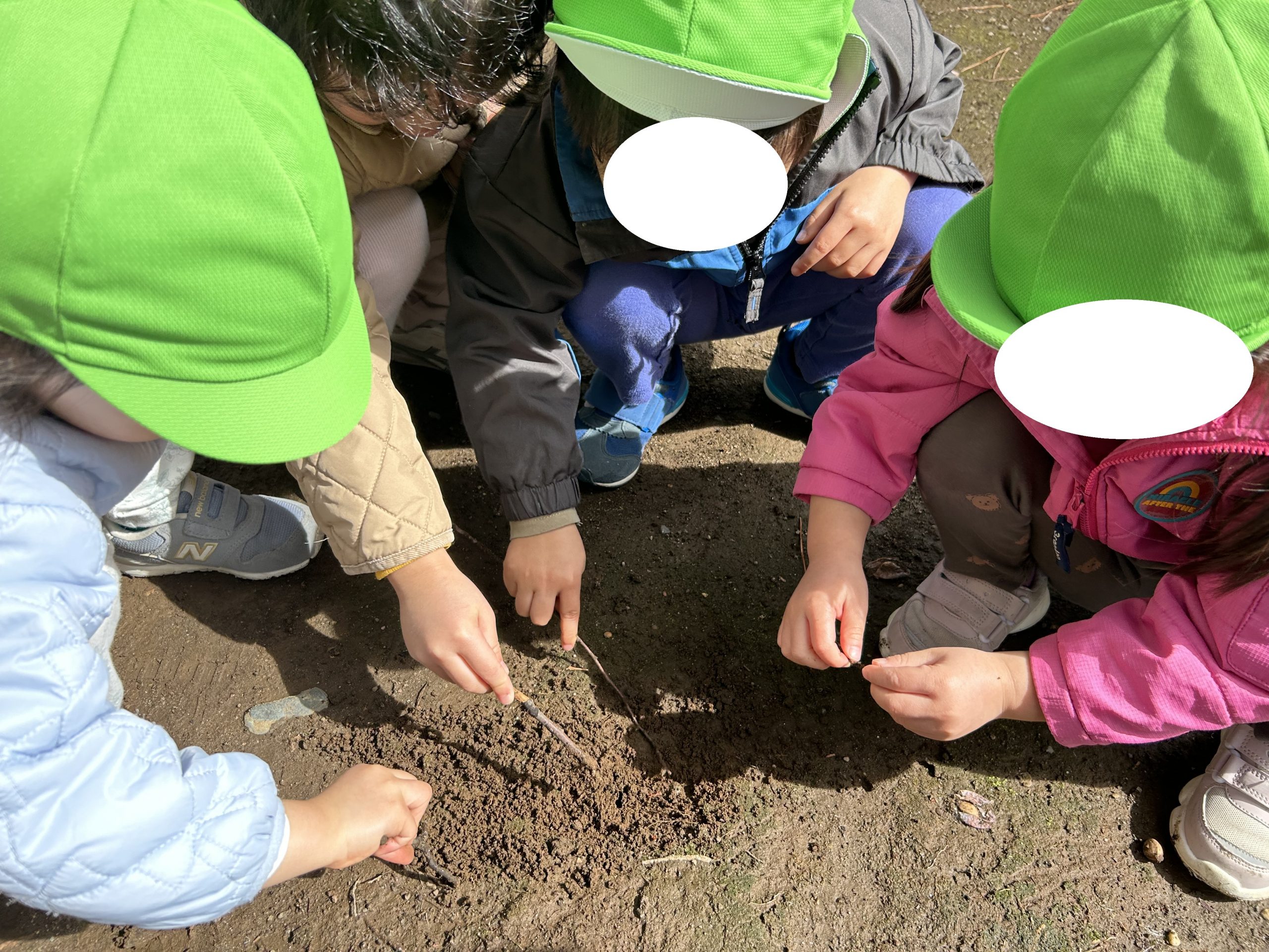「ここを掘ったら虫がいるんじゃない?」