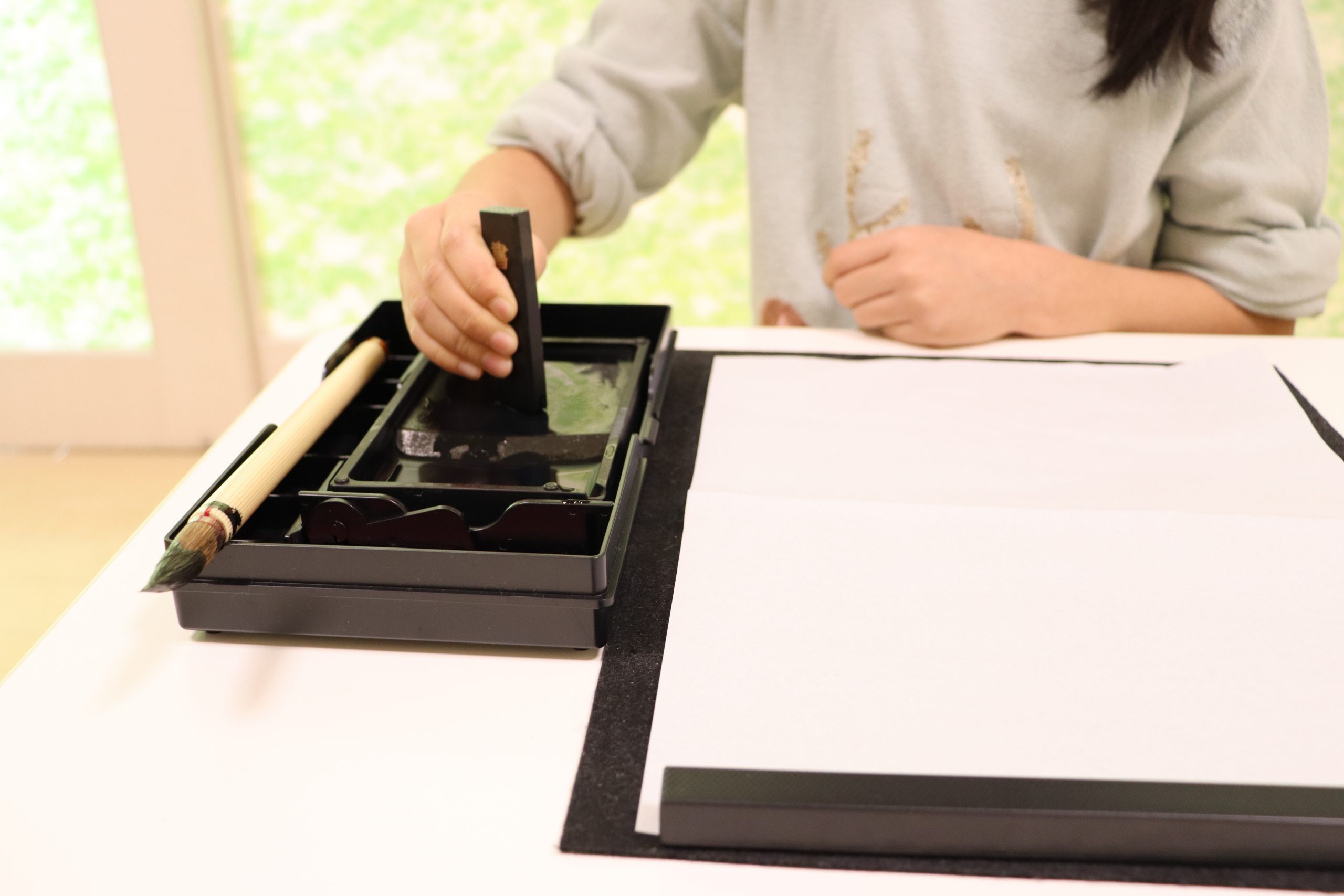 最初は墨をするところから始めました。