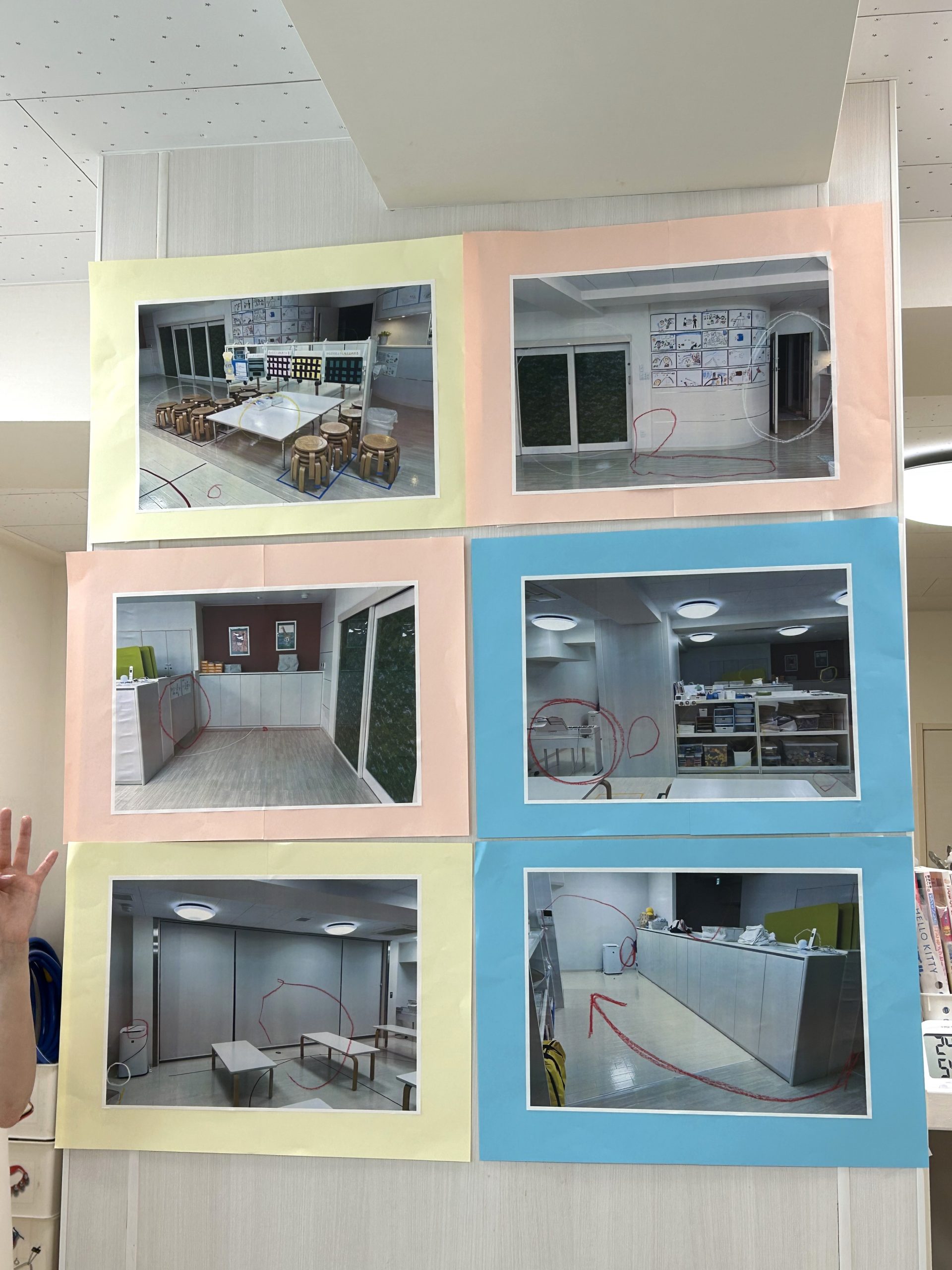 クレヨンで印をつけ、皆に説明をしました。
