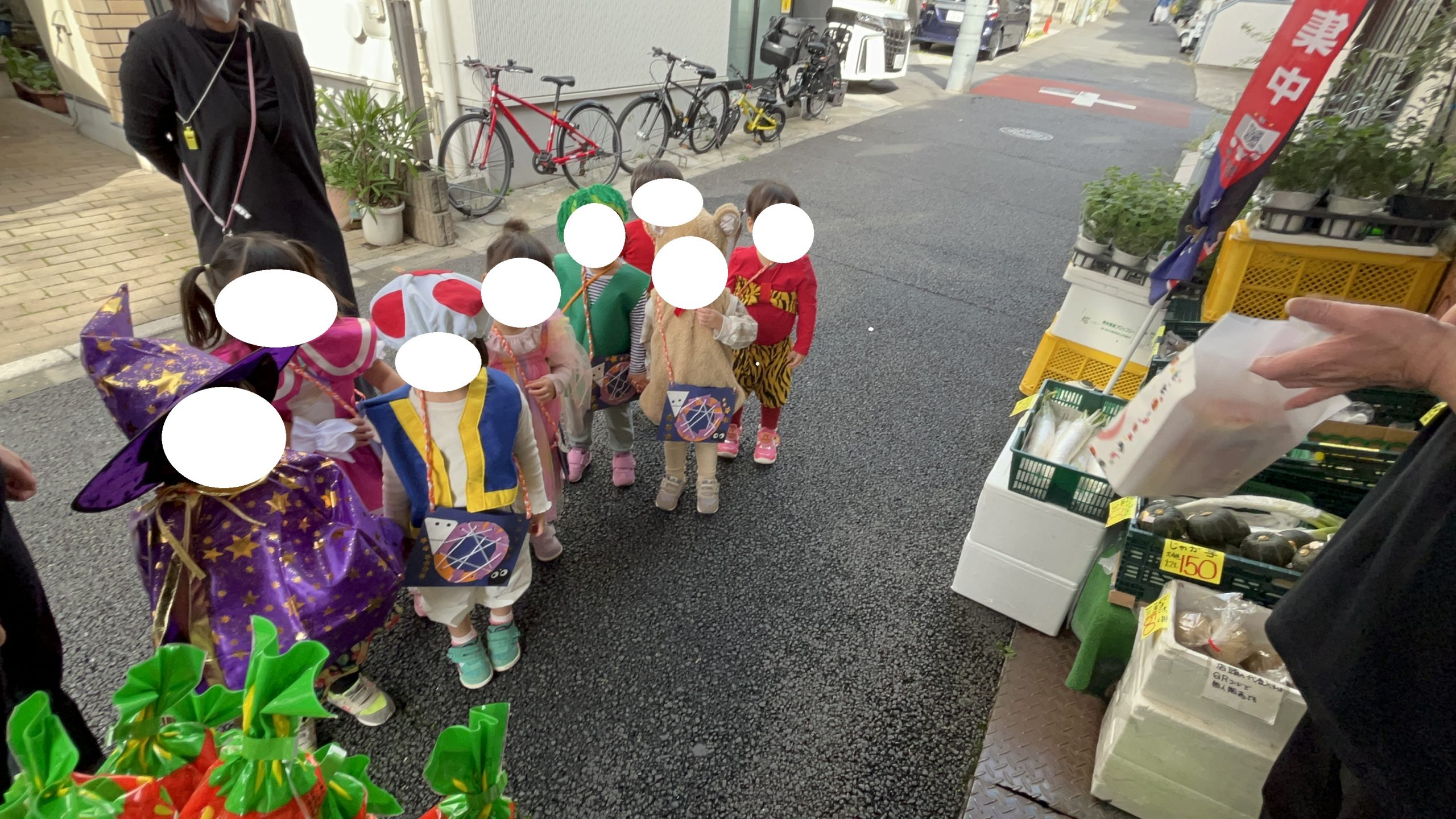 全クラス八百屋さんへ向かい、