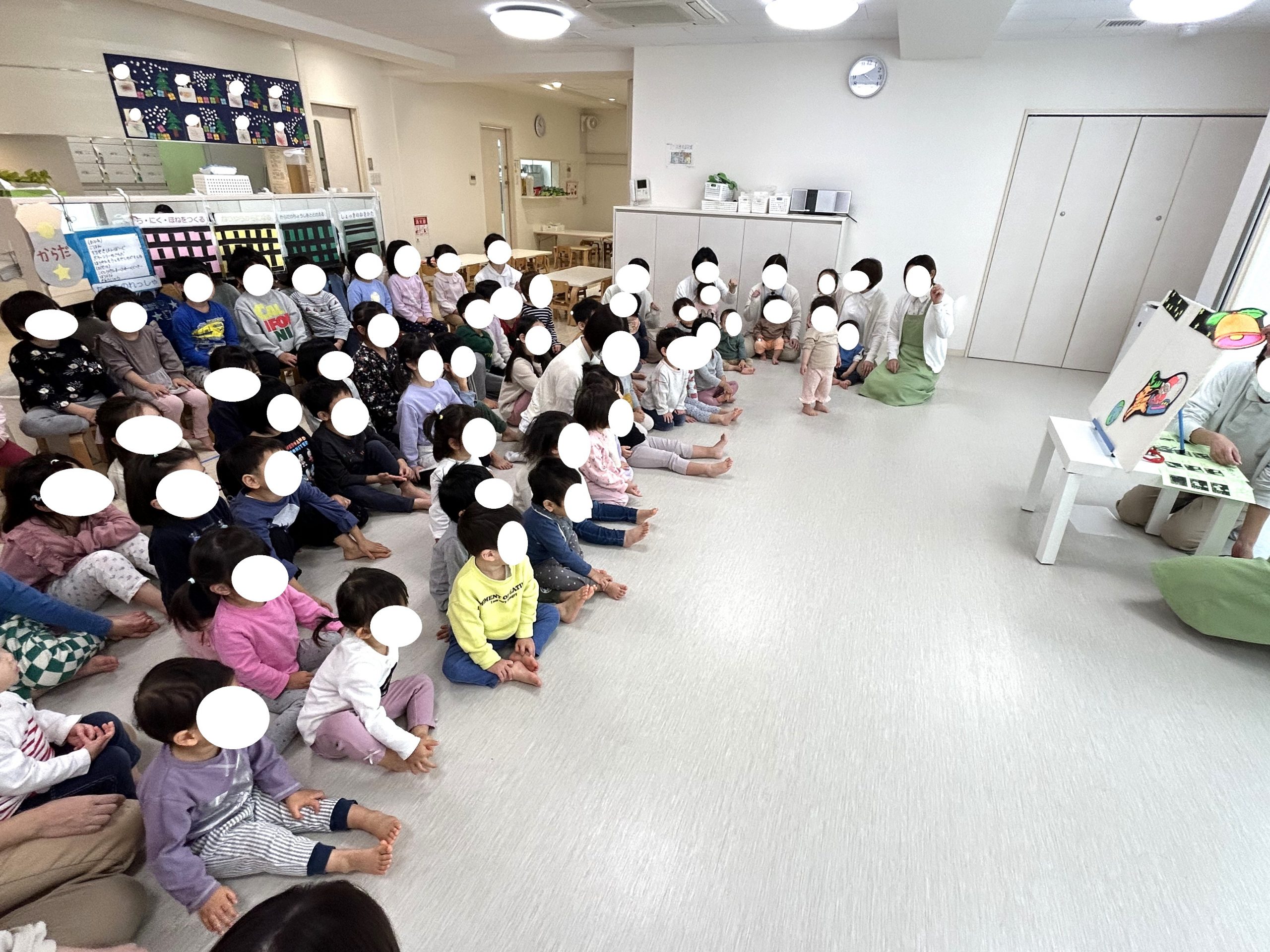 保育者の出し物のパネルシアターを楽しんだ後、