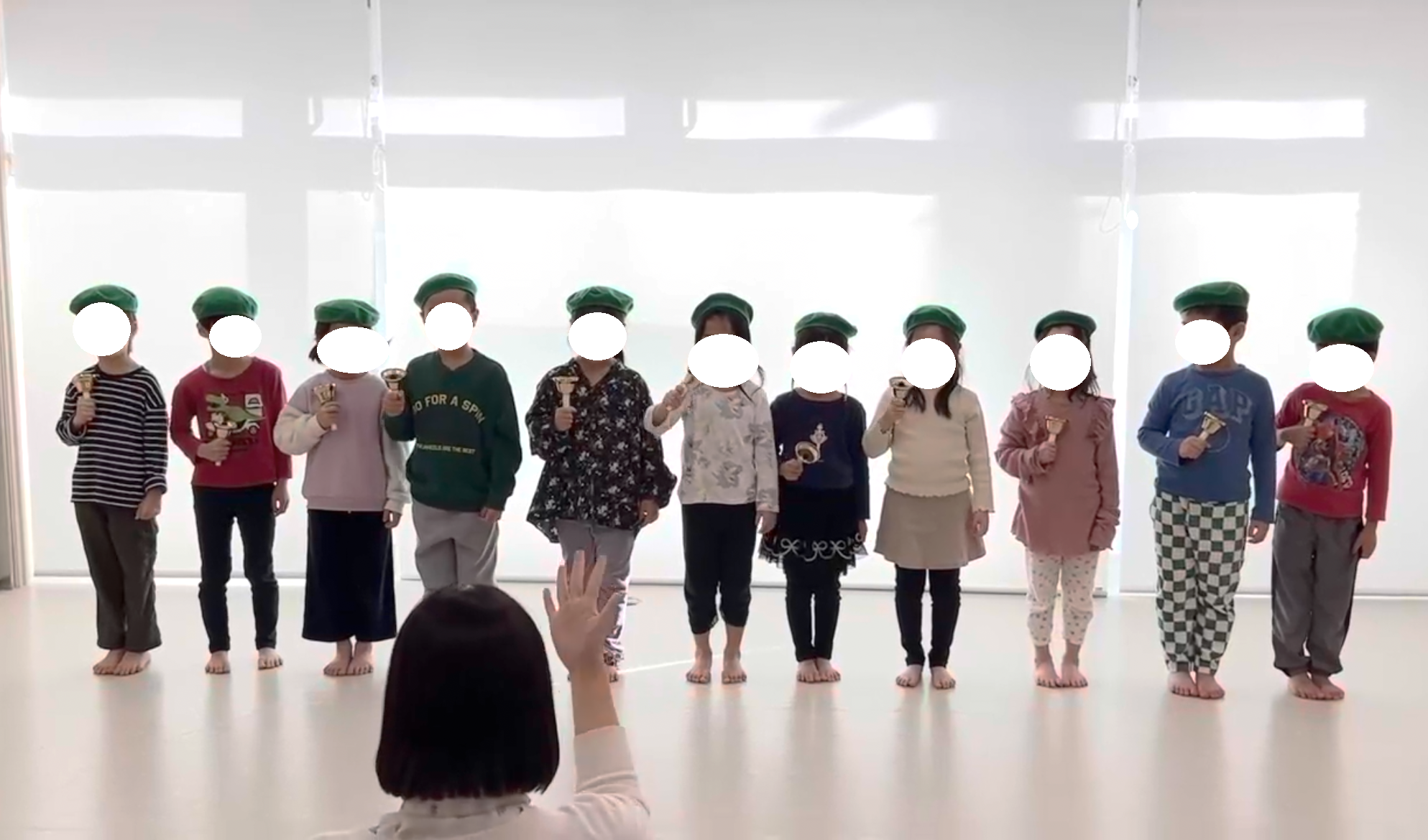 一人ひとつのハンドベルを持ち、