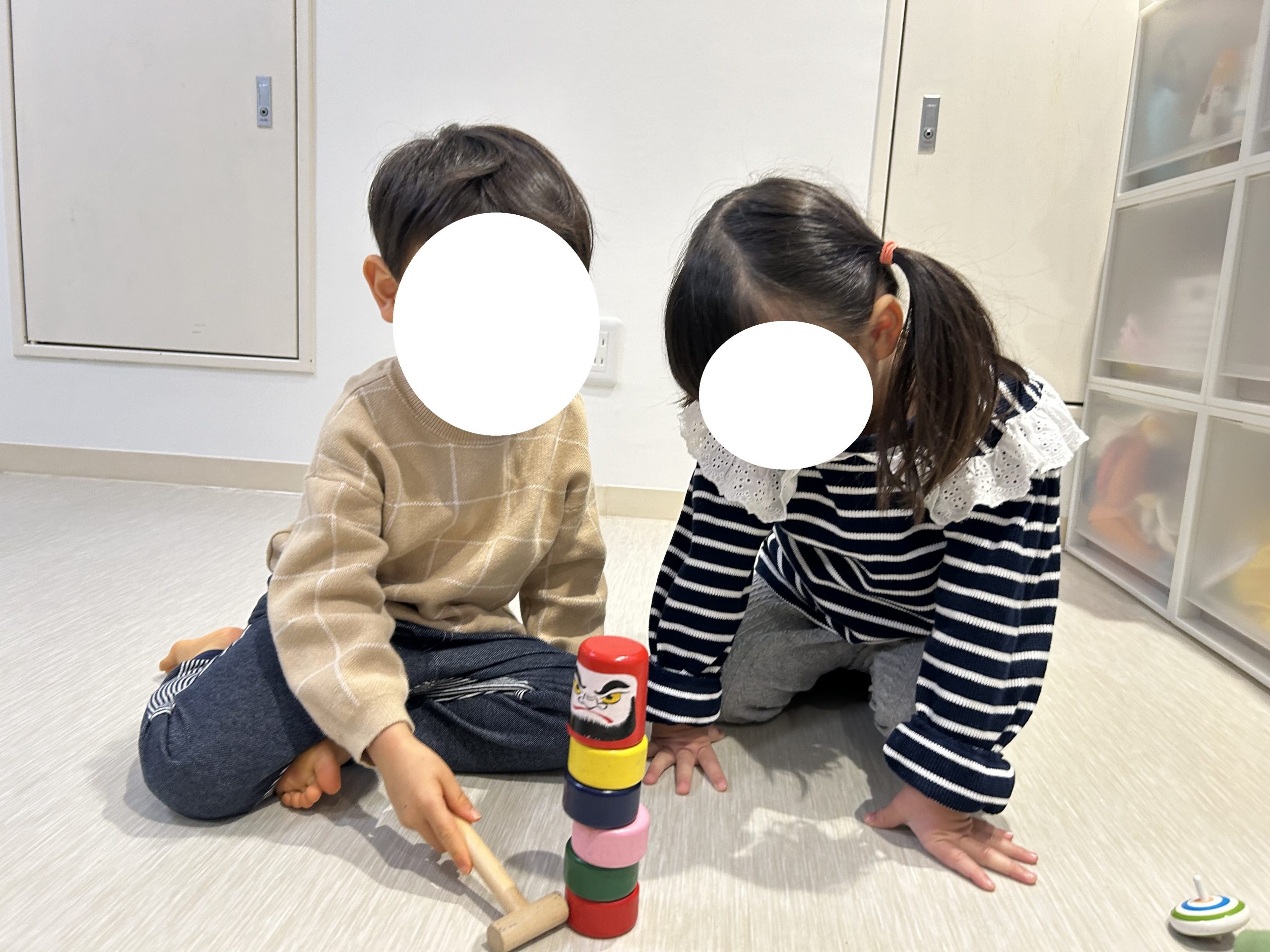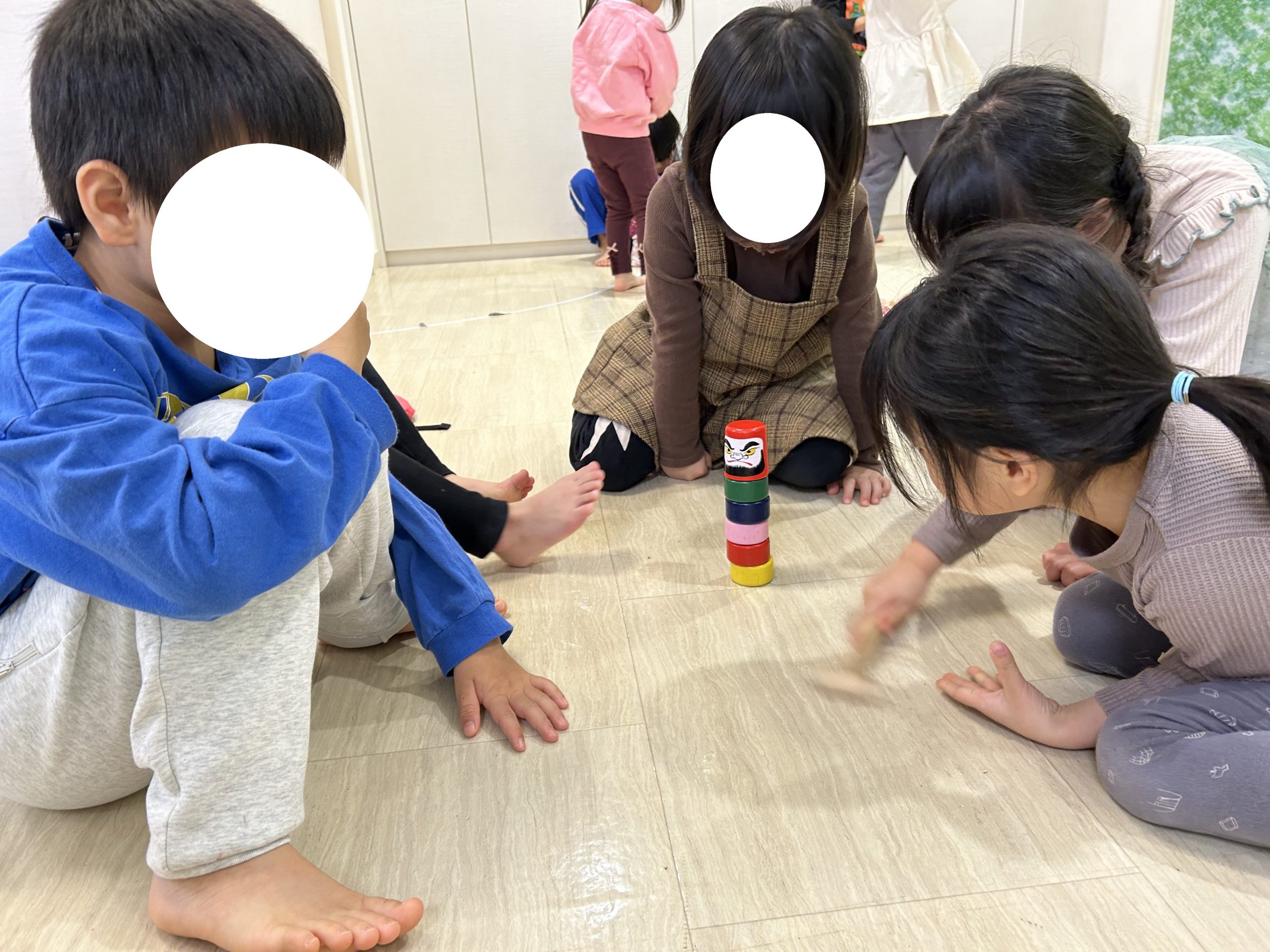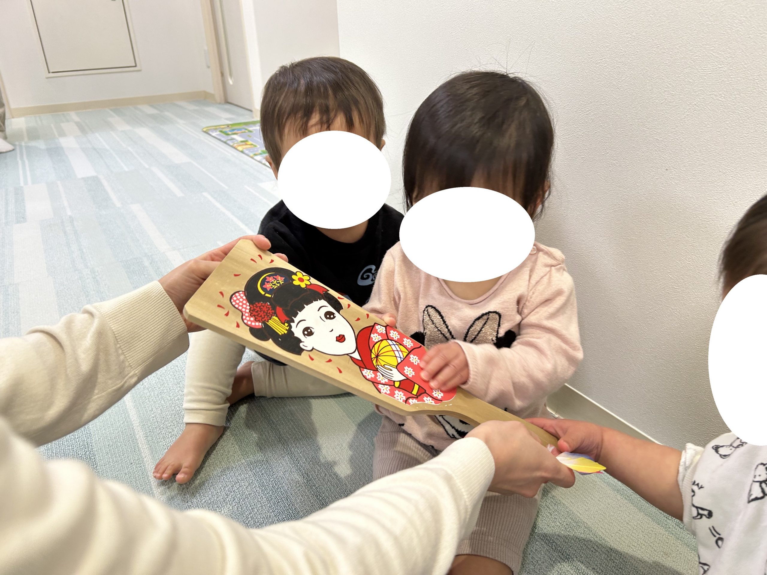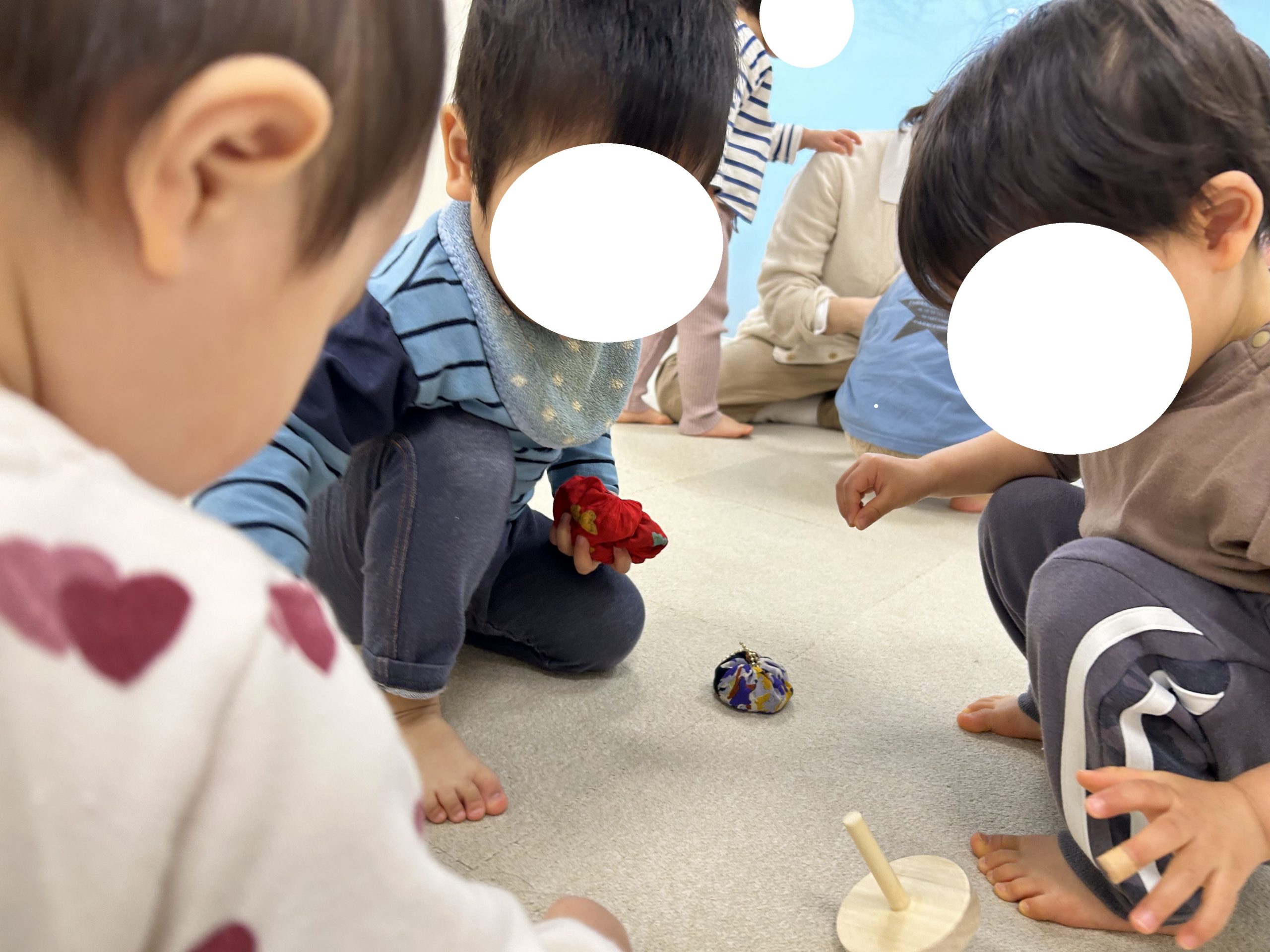 伝承遊びでお手玉、コマ、だるま落とし、カルタなど