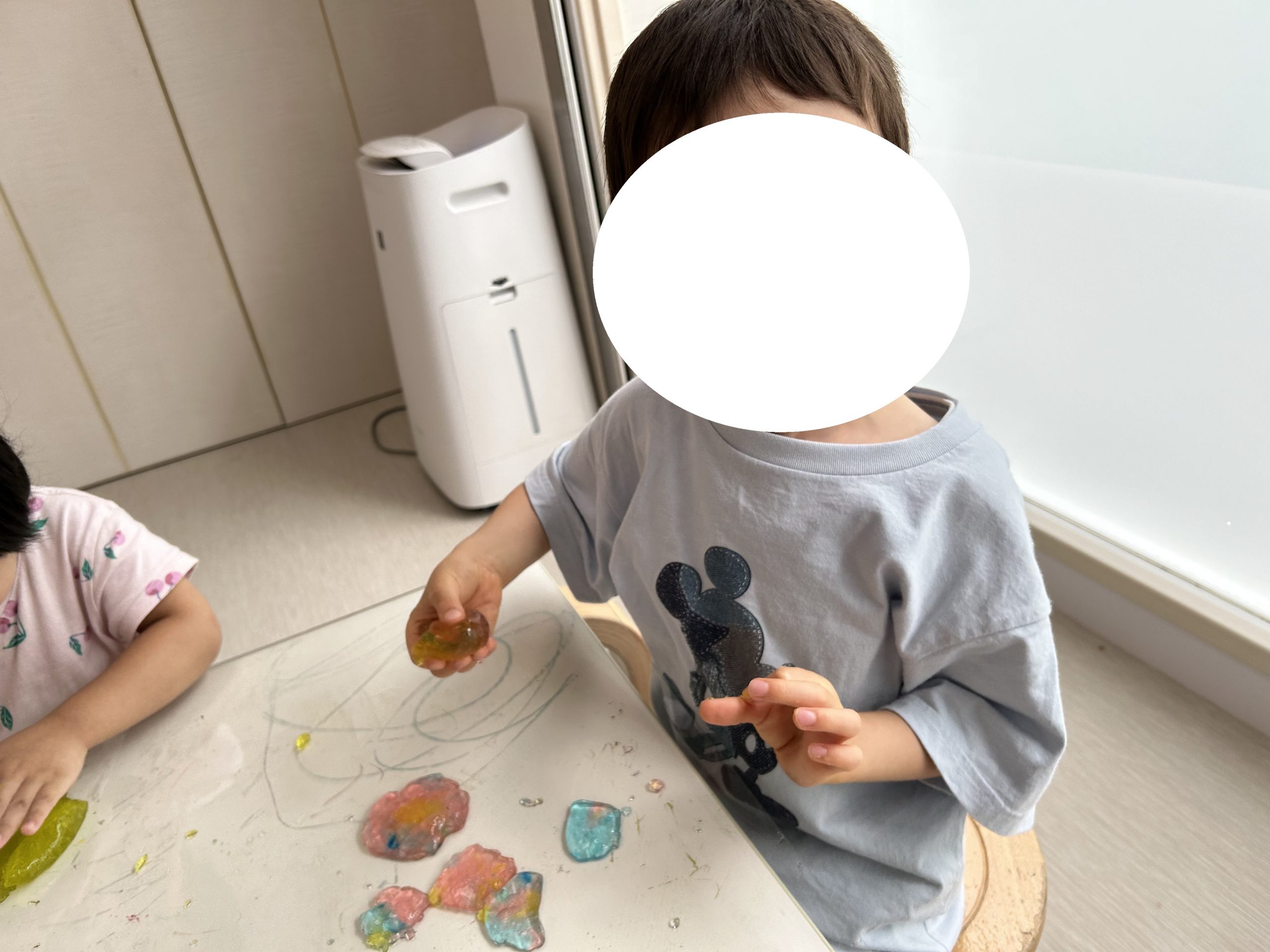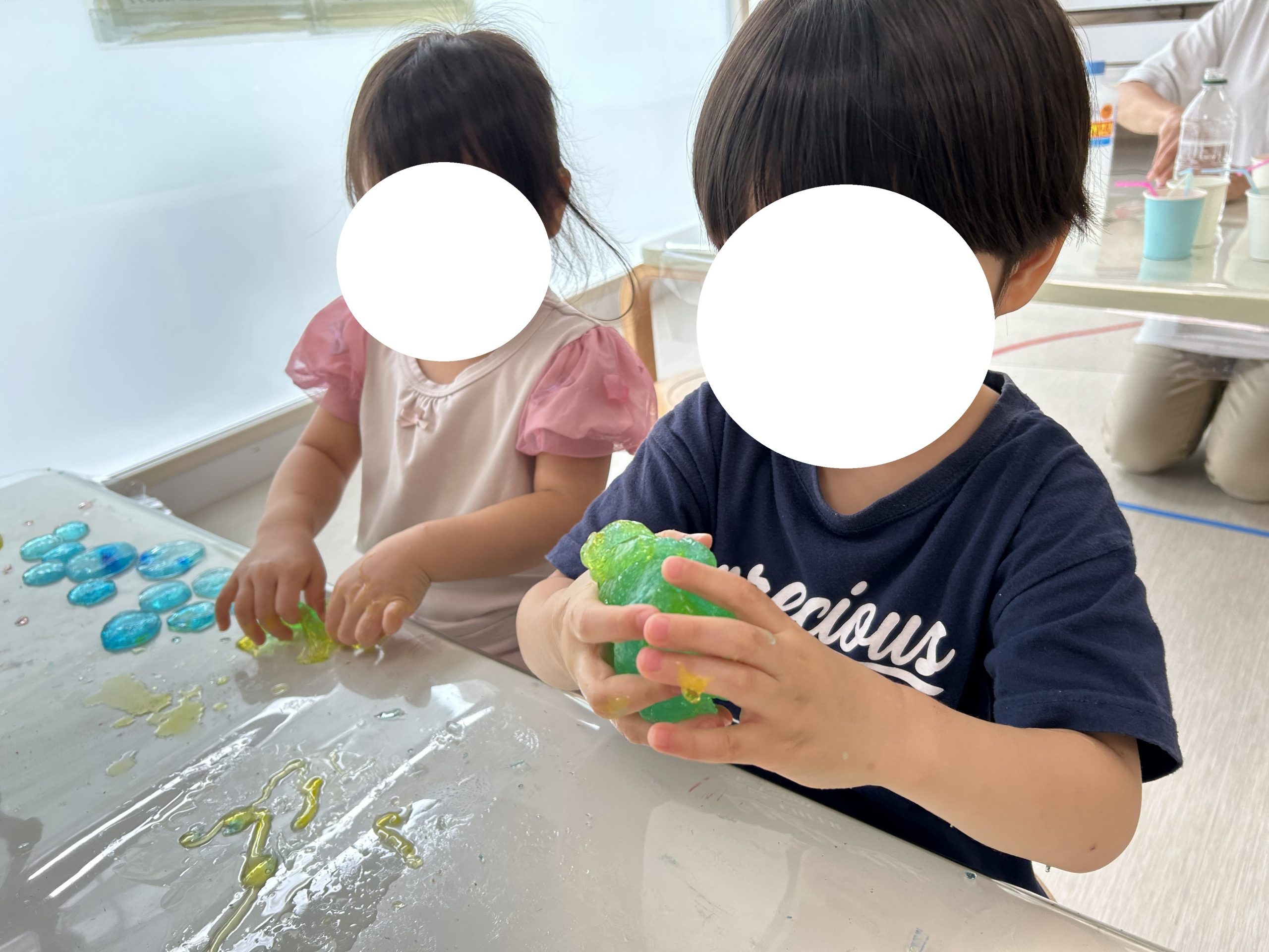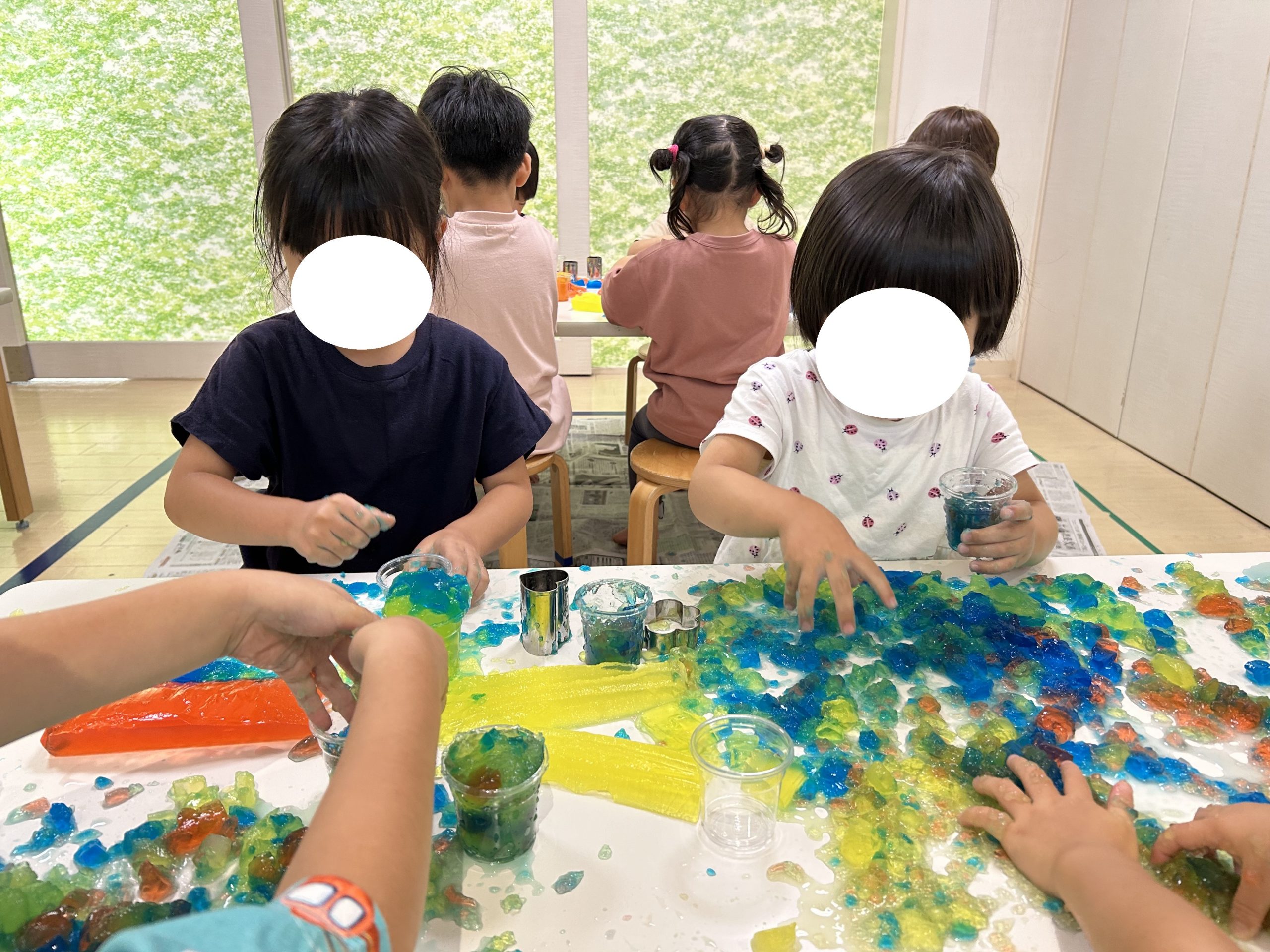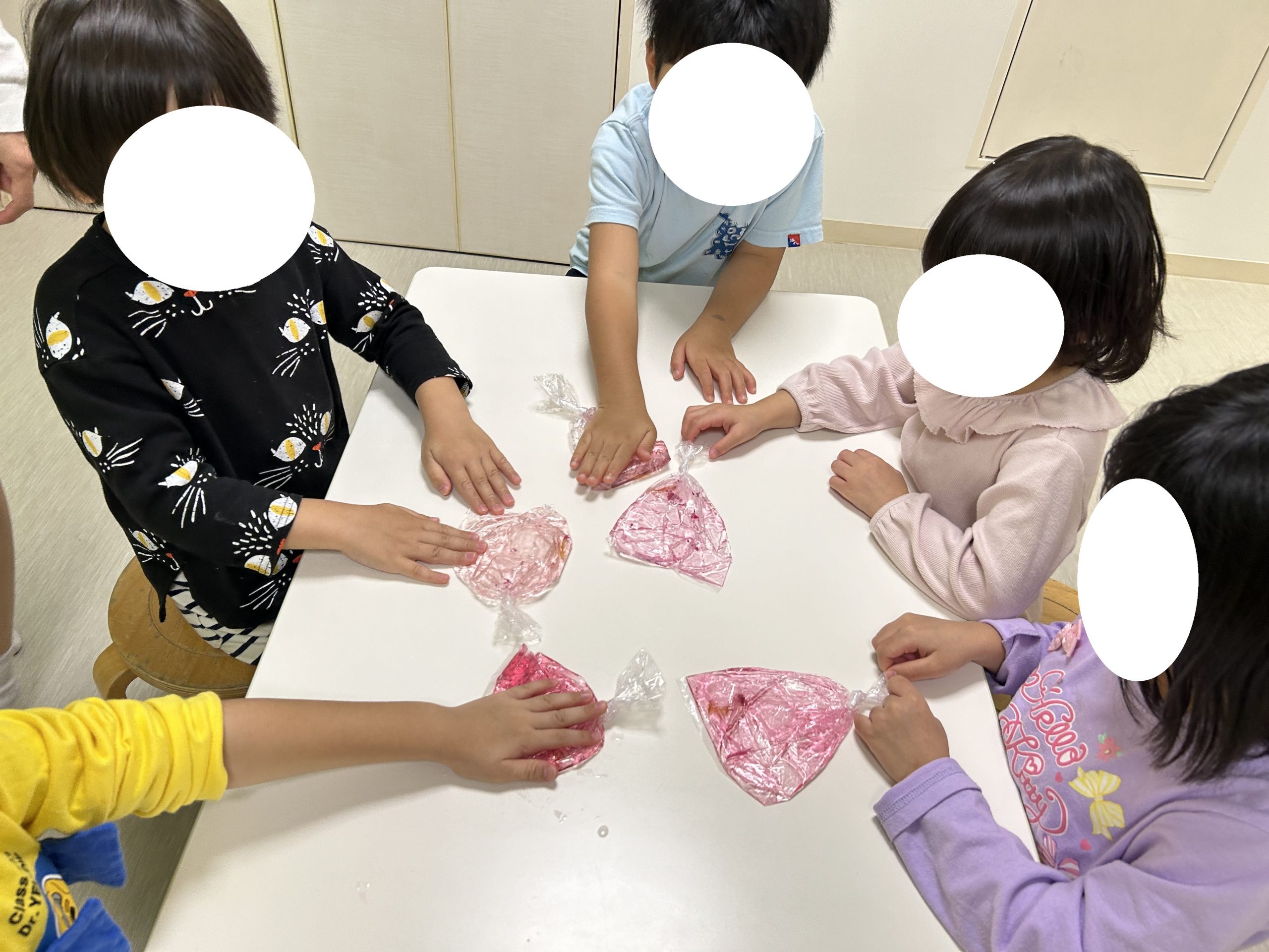 氷遊びの際に氷が溶けると色がでるようにしました。