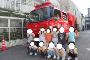 記念撮影では各クラスが消防車と一緒に集合写真を撮りました🚒✨