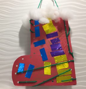 クリスマスブーツの紐通しも
