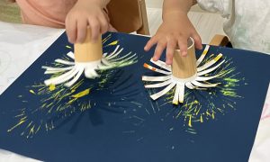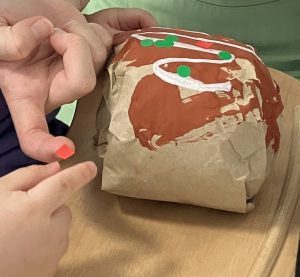 完成した装飾を見つけると「絵の具でぺたぺたした!」と嬉しそうに教えてくれました。
