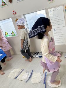 最後は5歳児クラスのお子様が 生地を切って、完成!