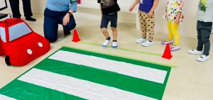 最後は、お部屋に信号機と横断歩道を準備してもらい、